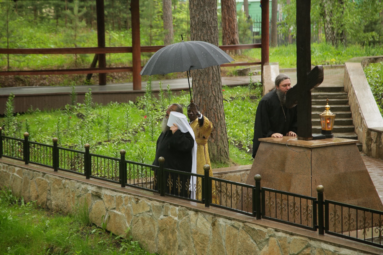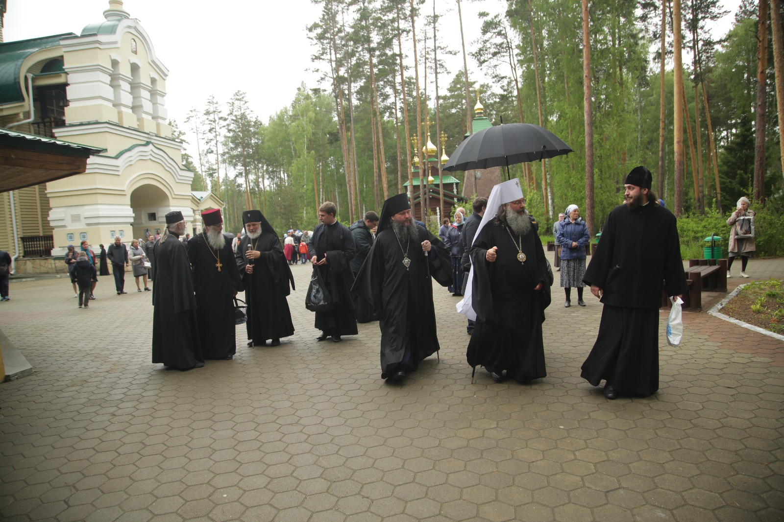 17 июня 2018 года, в неделю третью по Пятидесятнице, день памяти святителя Митрофана, первого Патриарха Константинопольского, митрополит Екатеринбургский и Верхотурский Кирилл, архиепископ Монреальский и Канадский Гавриил и епископ Нижнетагильский и Невьянский Евгений совершили Божественную литургию в Державном храме мужского монастыря святых Царственных страстотерпцев в урочище Ганина Яма.