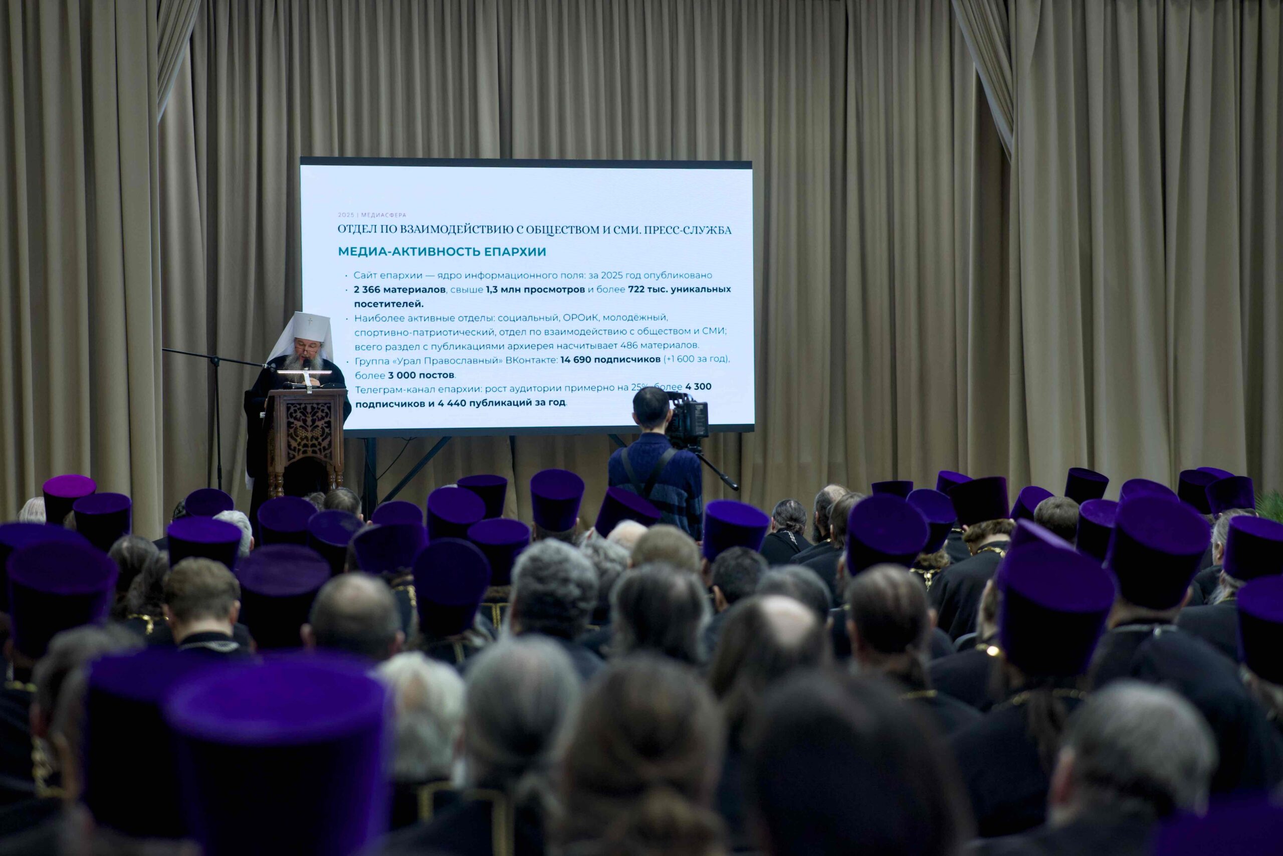 Сегодня, 22 декабря 2025 года, митрополит Екатеринбургский и Верхотурский Евгений возглавил общеепархиальное собрание, за которым подвел итоги деятельности епархиальных подразделений в уходящем году, а также вручил Патриаршие и епархиальные награды духовенству и мирянам, дипломы – выпускникам магистерского отделения уральской духовной школы.