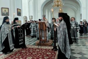 Митрополит Евгений совершил Утреню со чтением Великого покаянного канона преподобного Андрея Критского в Свято-Николаевском мужском монастыре духовной столицы Урала