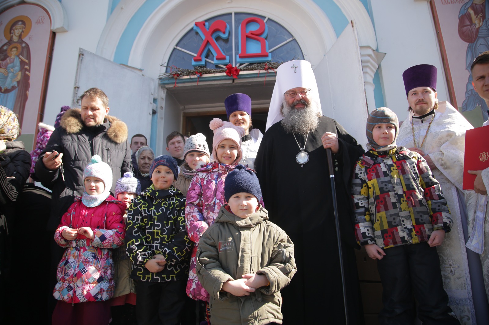 После литургии духовенство и прихожане храма во главе с владыкой Кириллом, по традиции, отпустили в небо белых голубей. Затем митрополит Кирилл прочитал молитву на освящение снеди и освятил пасхальные куличи и яйца.