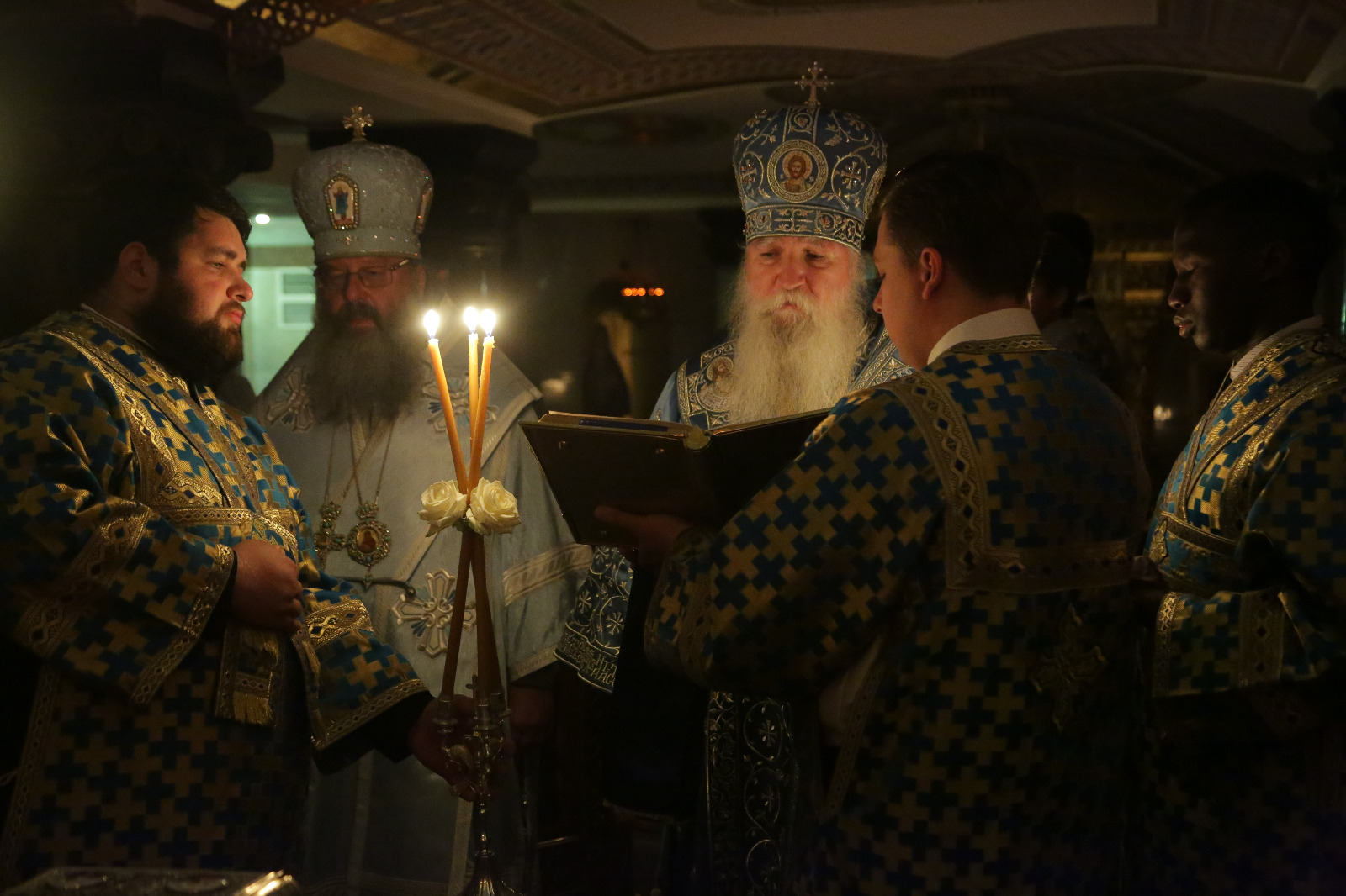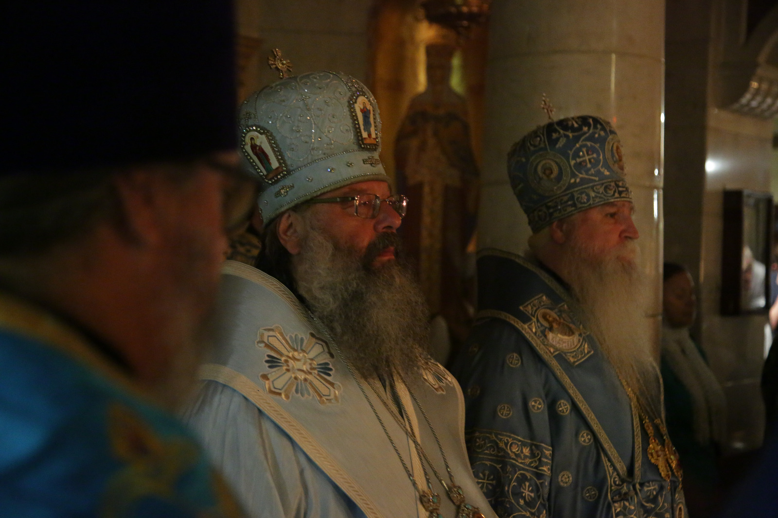 Преосвященнейшим владыкам сослужили: старший священник Храма на Крови протоиерей Максим Миняйло, благочинный русских приходов Новой Зеландии протоиерей Владимир Бойков, духовенство Екатеринбургской и Австралийско-Новозеландской епархий.