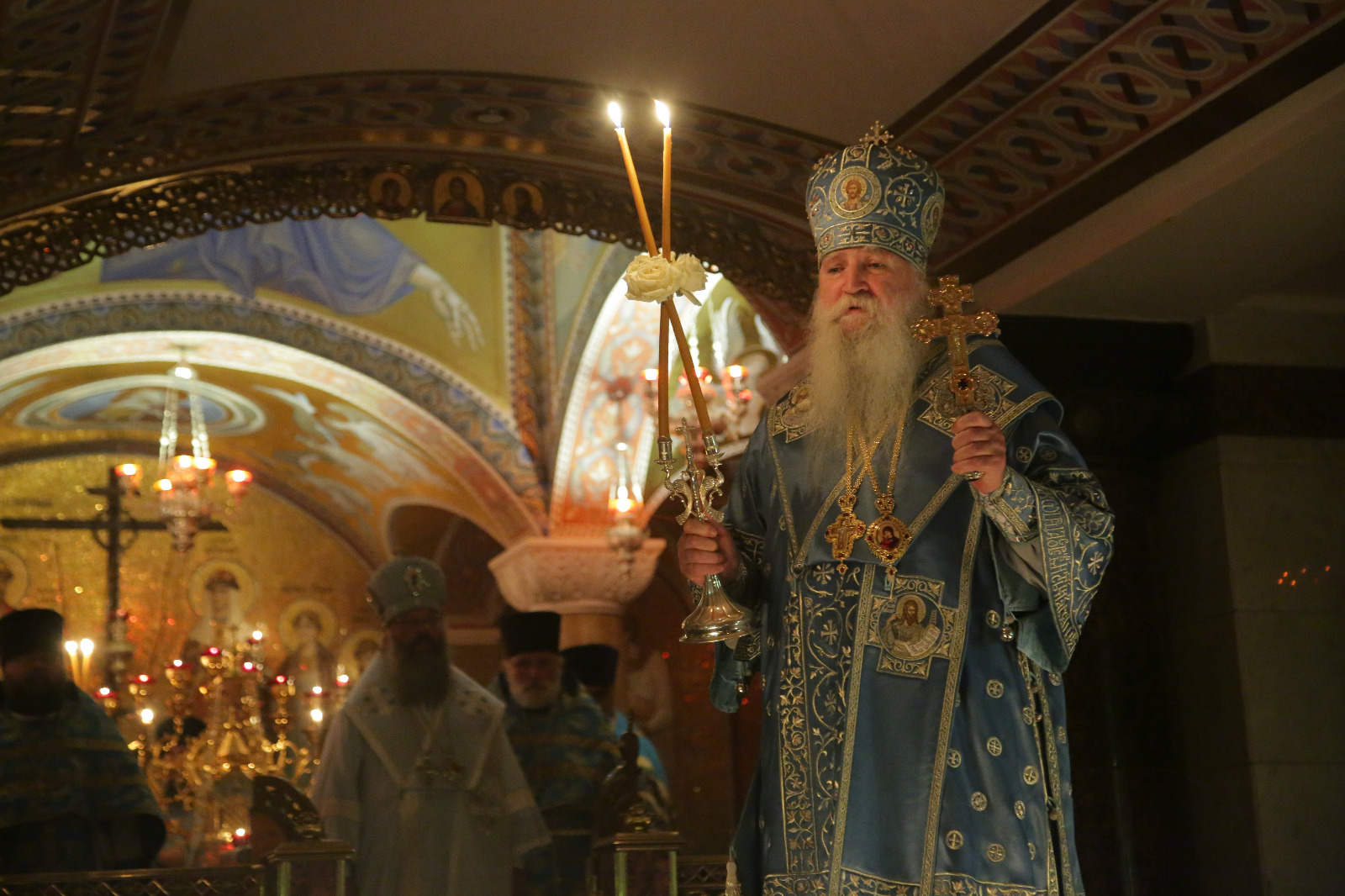 — Поздравляем вас с праздником иконы Божией Матери, именуемой «Троеручица», которая была найдена здесь, на месте, где стоял Ипатьевский дом, а потом с армией Колчака и русской миграцией проследовала по всем путям через Китай до Америки и Канады, а затем с благодарностью Богу Ольга Николаевна Куликовская-Романова вернула сюда. И сегодня является одной из главных святынь нашего храма.