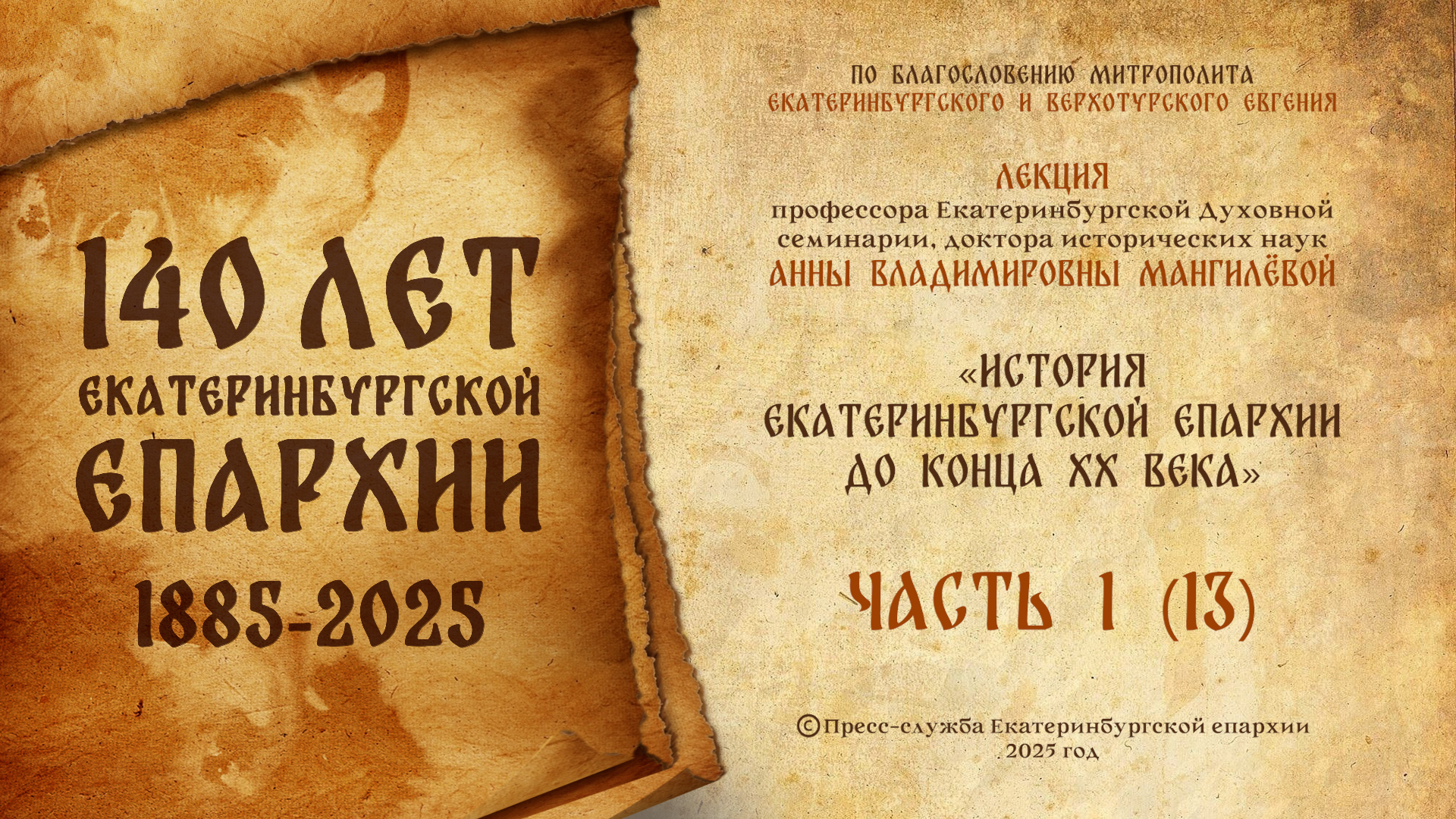 Историко-просветительская лекция профессора кафедры церковной истории и филологии Екатеринбургской духовной семинарии, доктора исторических наук Анны Владимировны Мангилевой «Об истории Екатеринбургской епархии до XX века» для удобства слушателей будет выходить в социальной сети ВКонтакте по вторникам — еженедельно по одной из 13 частей.