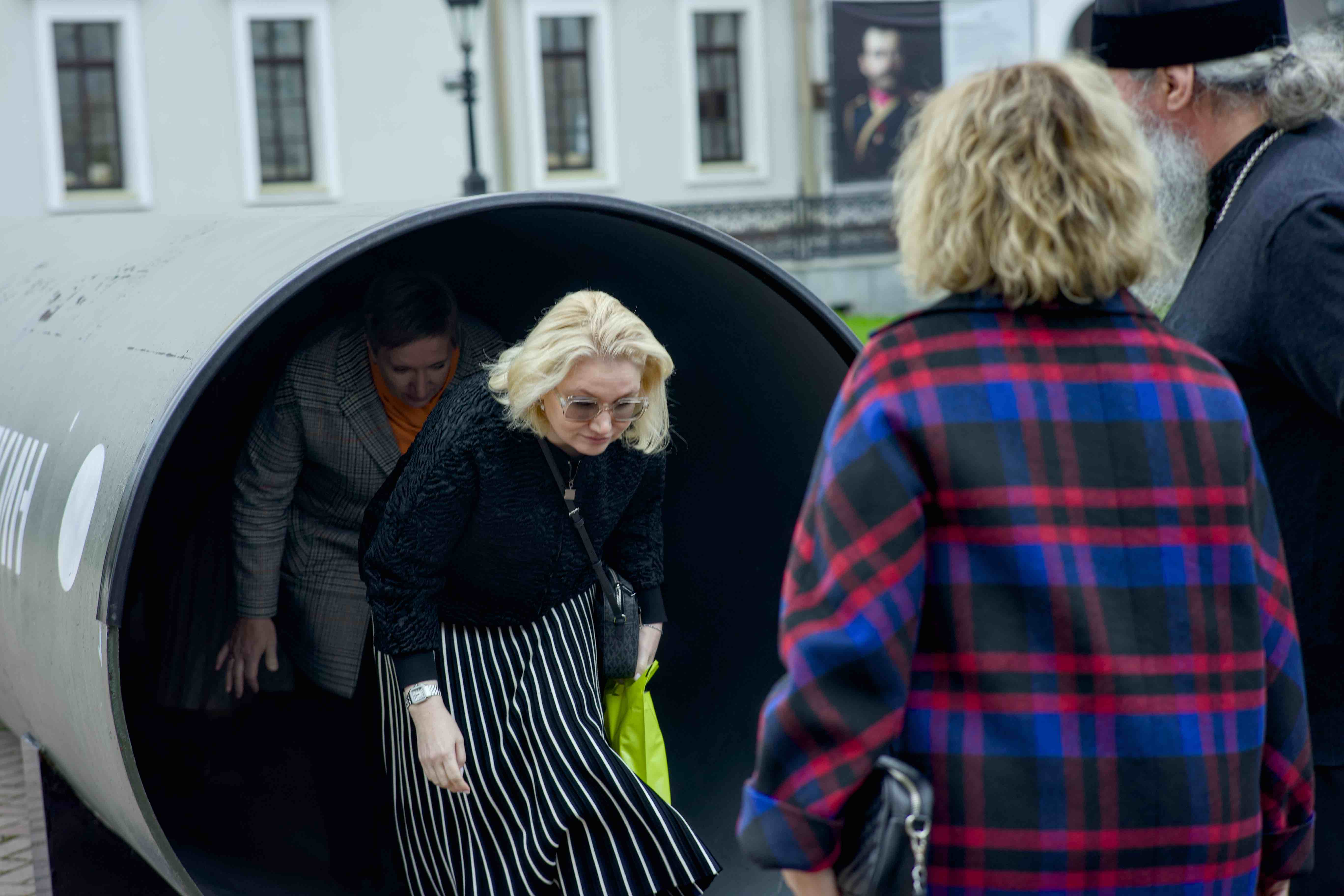 Вместе с педагогами митрополит Евгений прошел по 16-метровому участку трубы, символизирующему 16-километровый героический путь, пройденный нашими воинами и сопровождавшим их священником.