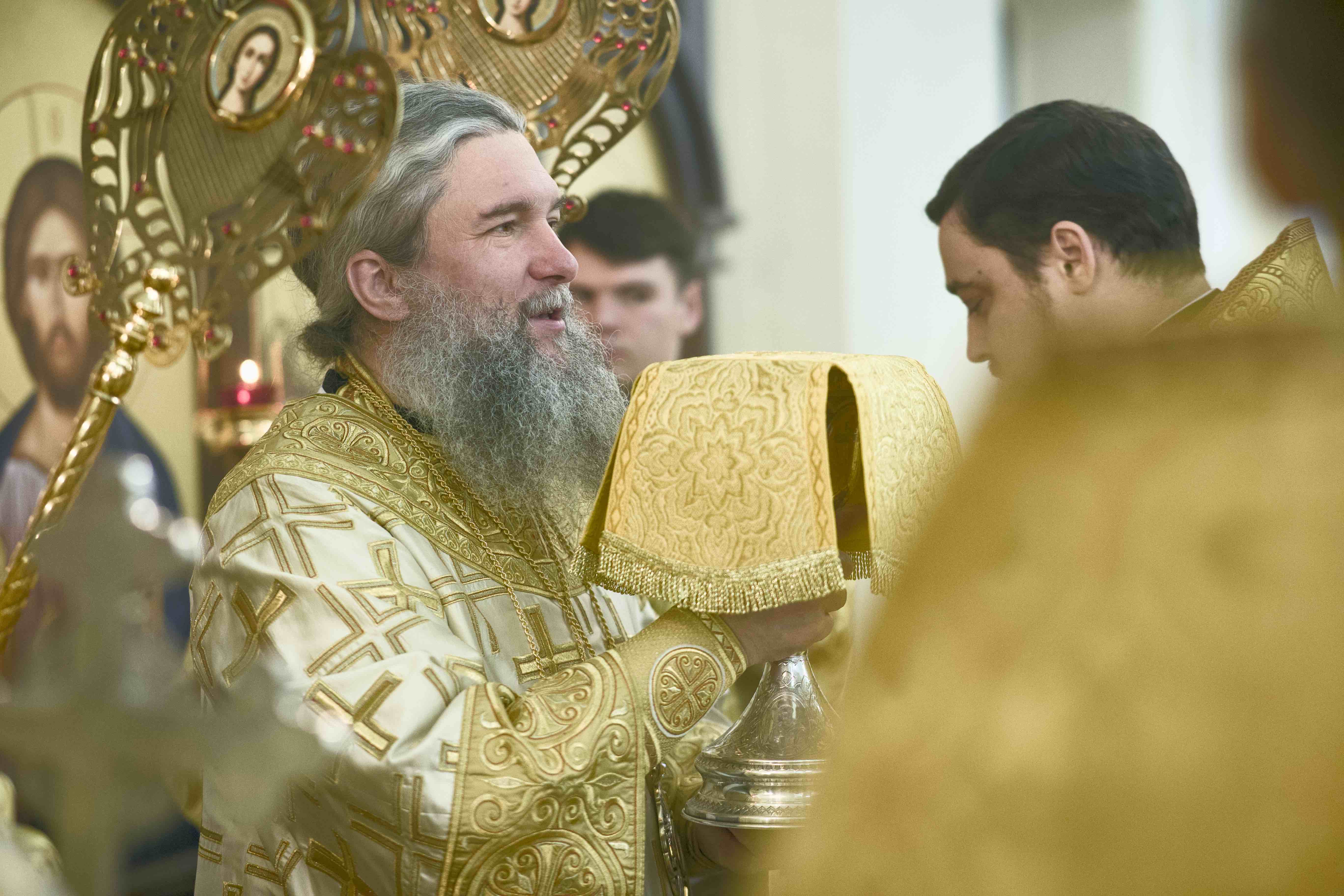 Высокопреосвященному владыке сослужили благочинный Ивановского округа храмов Екатеринбурга, руководитель Миссионерского отдела Екатеринбургской епархии иерей Даниил Рябинин; руководитель отдела по утверждению трезвости и профилактике зависимостей, настоятель Никольского храма при Уральском горном университете протоиерей Игорь Бачинин; руководитель отдела религиозного образования и катехизации, клирик храма честь Сошествия Святого Духа на апостолов «Большой Златоуст» иерей Василий Равлик; настоятель храма-колокольни «Большой Златоуст» иерей Виктор Явич; настоятель прихода во имя святого страстотерпца врача Евгения Боткина города Первоуральска иерей Иоанн Парамонов и другие клирики Екатеринбургской епархии.