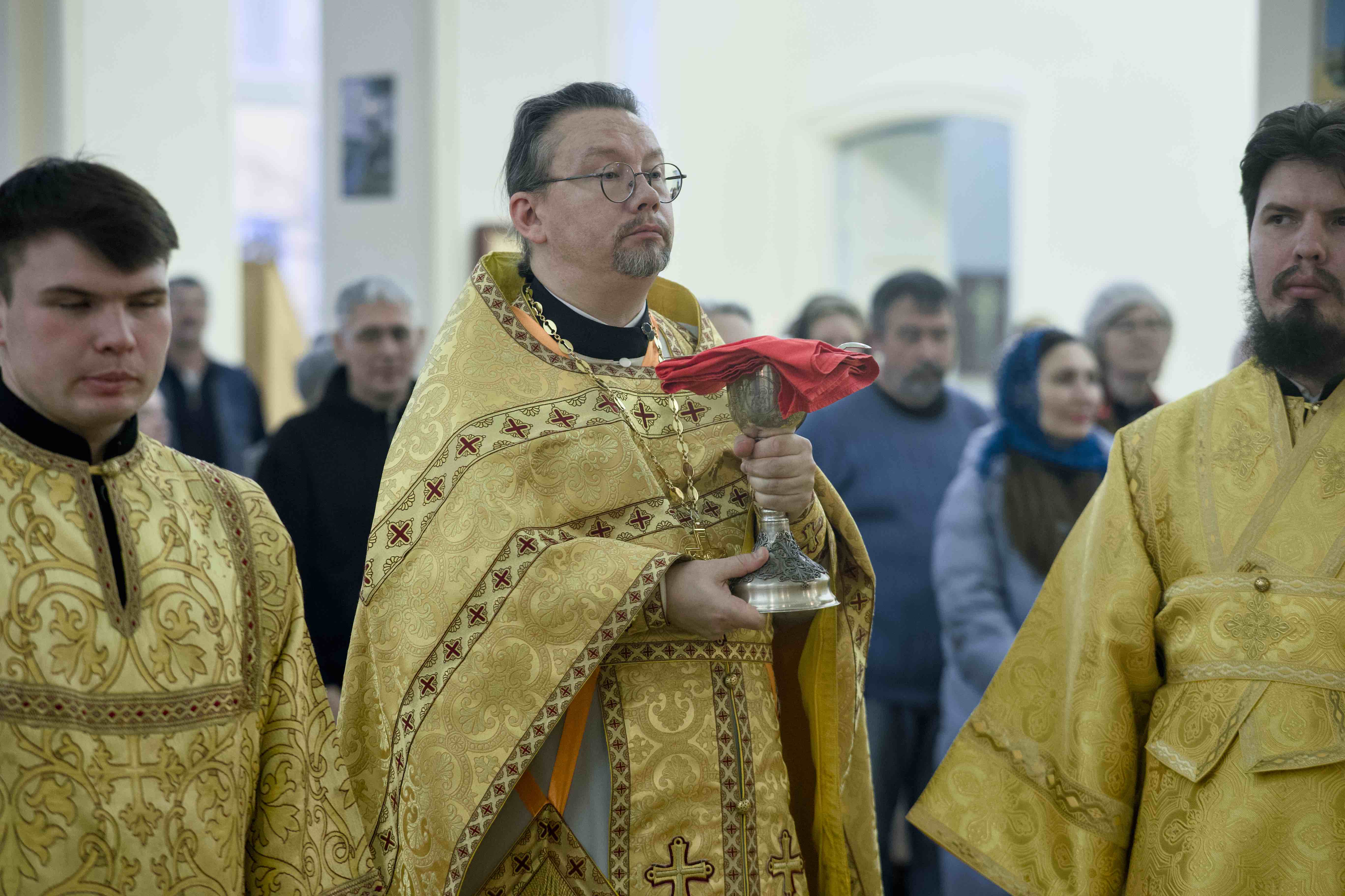 Разделить радость молитвенного общения с правящим архиереем в этот день собралось множество прихожан, в том числе представители Екатеринбургского отделения ВРНС. Причастие святых Христовых Тайн было совершено из трех Чаш.