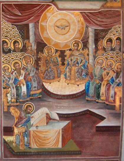 Святые отцы VII Вселенского Собора собрали церковный опыт почитания святых икон с первых времен, обосновали его и сформулировали догмат об иконопочитании на все времена и для всех народов, которые исповедуют Православную веру. Святые отцы провозгласили, что иконопочитание — это законоположение и Предание Церкви, оно направляется и вдохновляется Святым Духом, живущим в Церкви. Изобразительность икон неразлучна с евангельским повествованием. И то, что слово евангельское сообщает нам через слух, то же самое икона показывает через изображение.