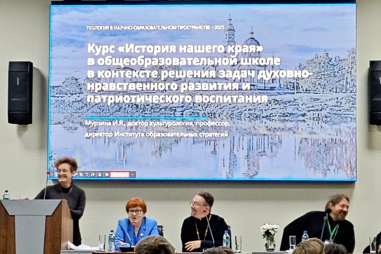Выступление доктора культурологии, профессора, директора Института образовательных стратегий Ирины Яковлевны Мурзиной было сфокусировано на практической реализации духовно-нравственных задач в школьном курсе краеведения