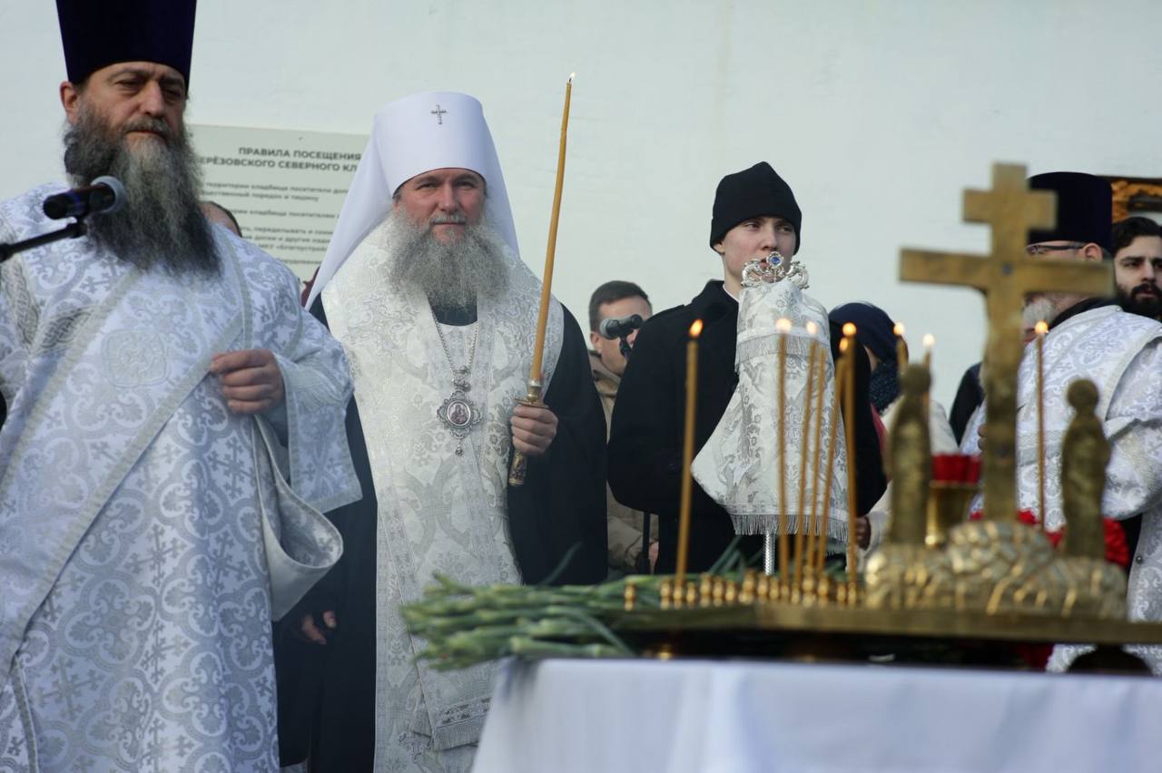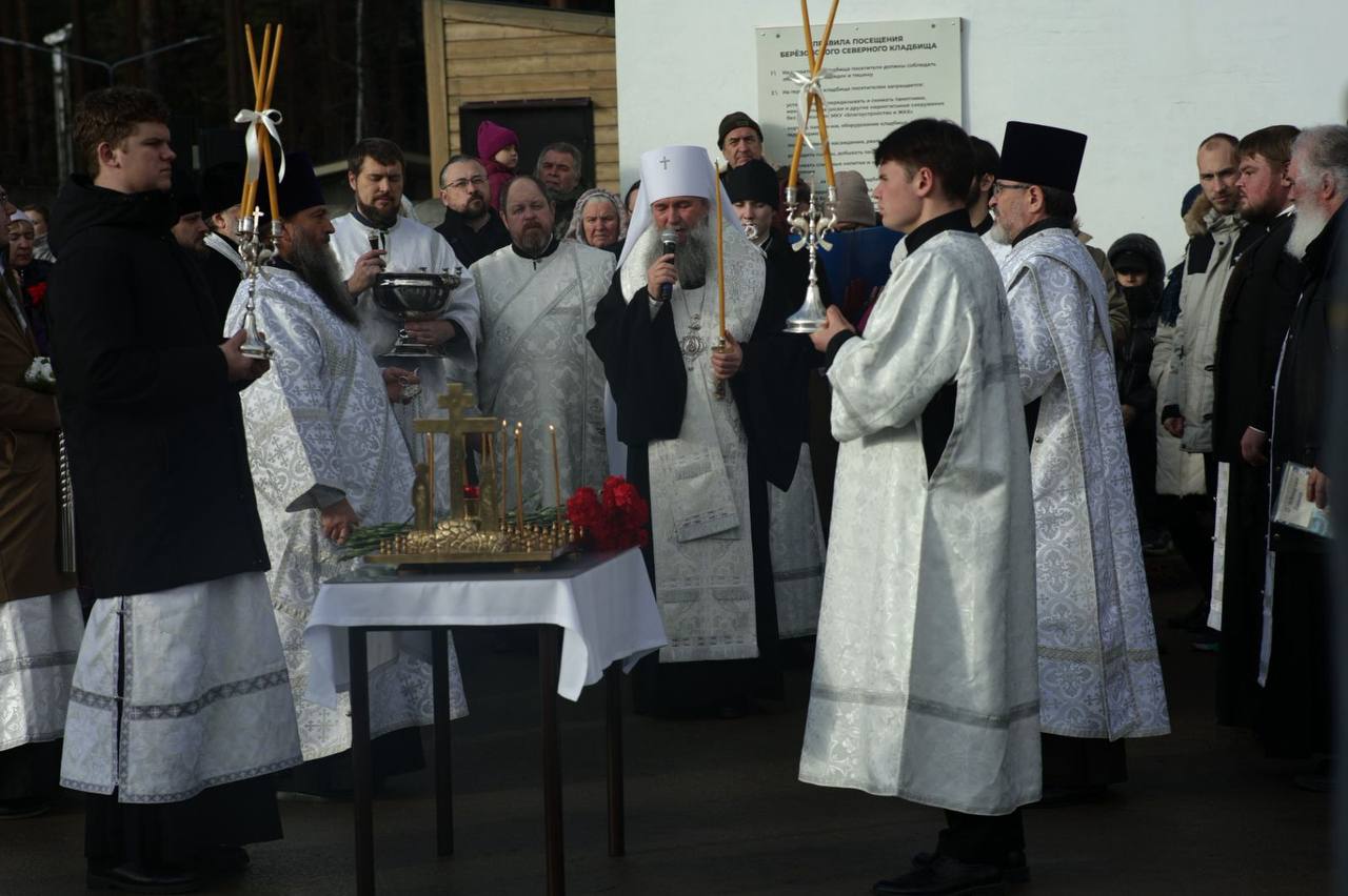 Митрополит Евгений после Божественной литургии в храме во имя преподобного Александра Свирского совершил заупокойное богослужение на Северном кладбище города Березовского и освятил памятник героям СВО. В церемонии открытия приняли участие глава Березовского округа Евгений Рудольфович Писцов, координатор фонда «Защитники Отечества» Светлана Рафаиловна Акберова, родители и родственники погибших, военные, прихожане храма во имя преподобного Александра Свирского.