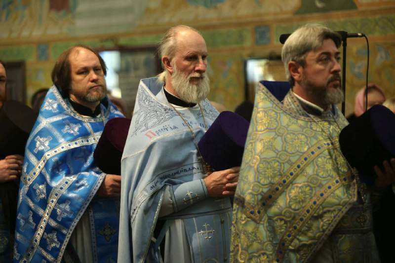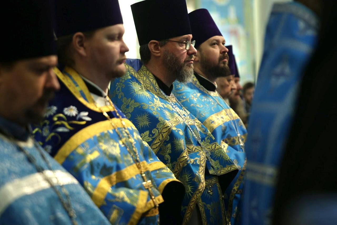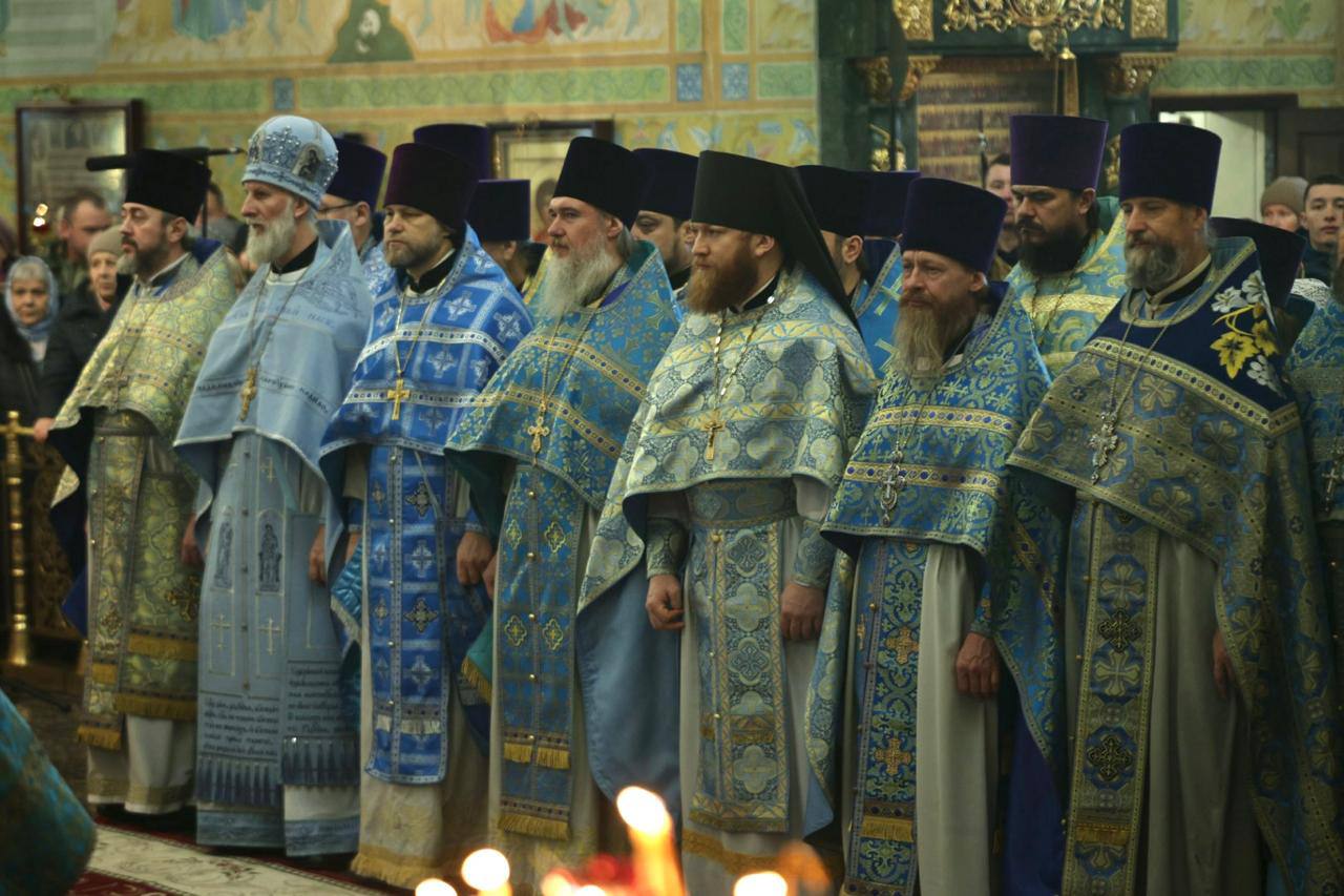 Его Высокопреосвященству сослужили секретарь Екатеринбургской епархии протоиерей Николай Тарантин, настоятель Преображенского храма города Екатеринбурга митрофорный протоиерей Николай Ладюк, проректор по научной работе Екатеринбургской духовной семинарии, настоятель храма во имя святых равноапостольных Кирилла и Мефодия, учителей Словенских митрофорный протоиерей Петр Мангилев; секретарь епархиального совета Екатеринбургской епархии игумен Вениамин (Райников), руководитель отделов Екатеринбургской епархии по связям Церкви с обществом и СМИ, а также по взаимодействию с казачеством, старший священник Храма-Памятника на Крови протоиерей Максим Миняйло, ректор Екатеринбургской духовной семинарии иеромонах Корнилий (Зайцев), руководитель Аппарата Синодального ОРОиК, клирик мужского монастыря во имя святых Царственных страстотерпцев в урочище Ганина яма иеромонах Симеон (Серегин); благочинный Ивановского церковного округа и руководитель миссионерского отдела епархии иерей Даниил Рябинин, благочинный Преображенского церковного округа города Екатеринбурга иерей Евгений Гаёв, благочинный Березовского округа храмов, настоятель храма во имя мученика Иоанна Воина поселка Новоберезовский иерей Кирилл Кузовников, настоятель Свято-Троицкого собора митрофорный протоиерей Николай Малета, наместник Крестовоздвиженского мужского монастыря города Екатеринбурга игумен Флавиан (Матвеев), настоятели храмов и другие клирики Екатеринбургской епархии