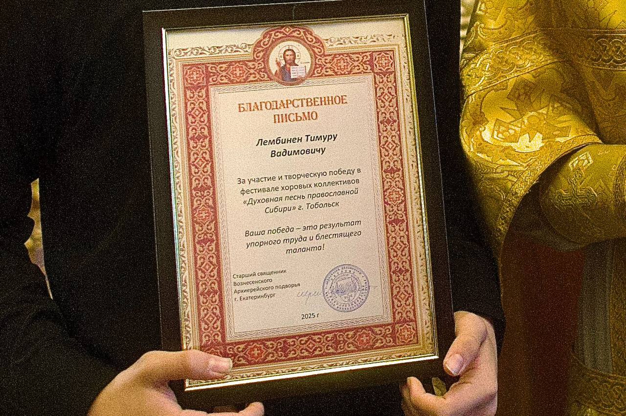 Приходской хоровой коллектив Вознесенского архиерейского подворья одержал победу в XXIX Межрегиональном фестивале-конкурсе хоров «Духовная песнь православной Сибири», который проходил в Тобольске с 1 по 4 ноября 2025 года.