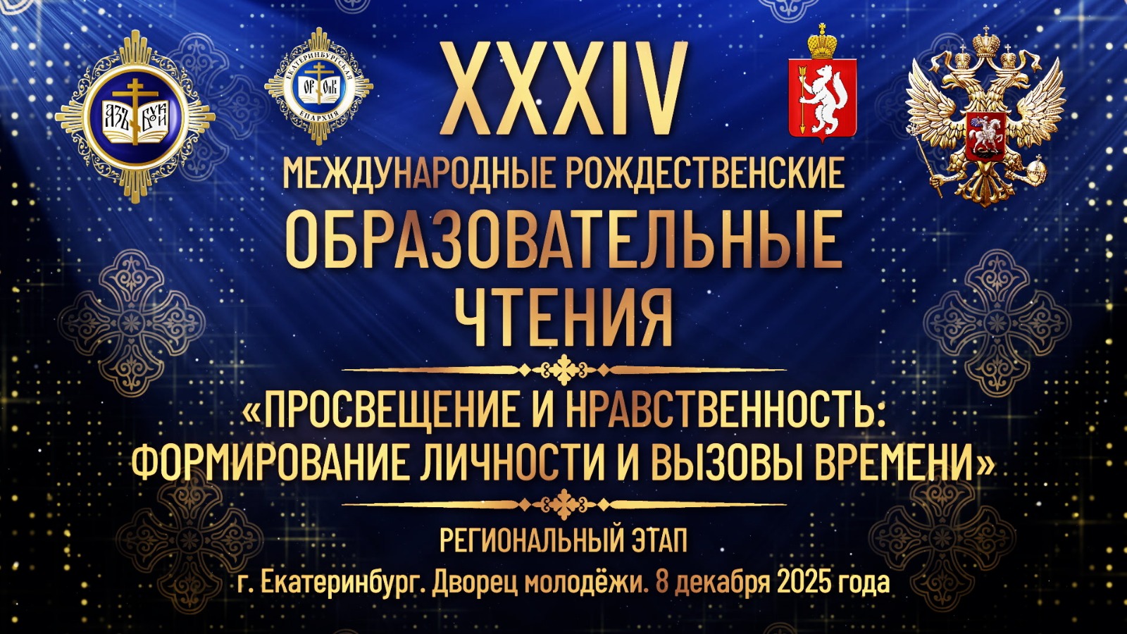 Региональный этап XXXIV Международных Рождественских образовательных чтений откроется 8 декабря 2025 года в концертном зале Дворца молодежи города Екатеринбурга. Тема форума: «Просвещение и нравственность: формирование личности и вызовы времени».