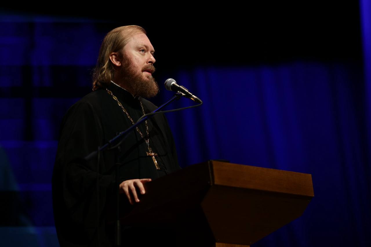 К участникам Пленарного заседания регионального образовательного форума в Екатеринбурге обратился почетный гость — председатель Патриаршей комиссии по вопросам семьи, защиты материнства и детства иерей Феодор Лукьянов.