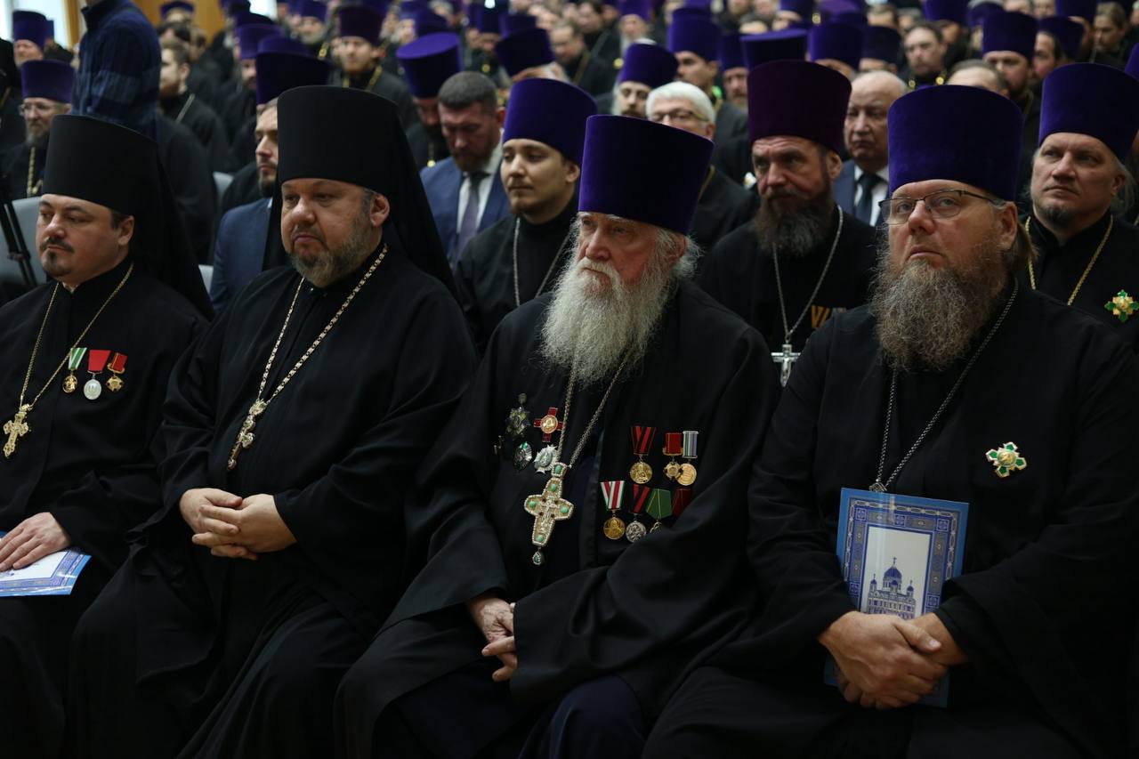 Завершилось собрание многолетием Святейшему Патриарху Кириллу и всем участникам сегодняшнего события, а также молитвой «Достойно есть».