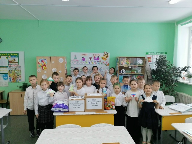 Ученики 2»Б» класса МКОУ средней школы N2 сделали новогодние подарки и написали теплые письма участникам специальной военной операции.