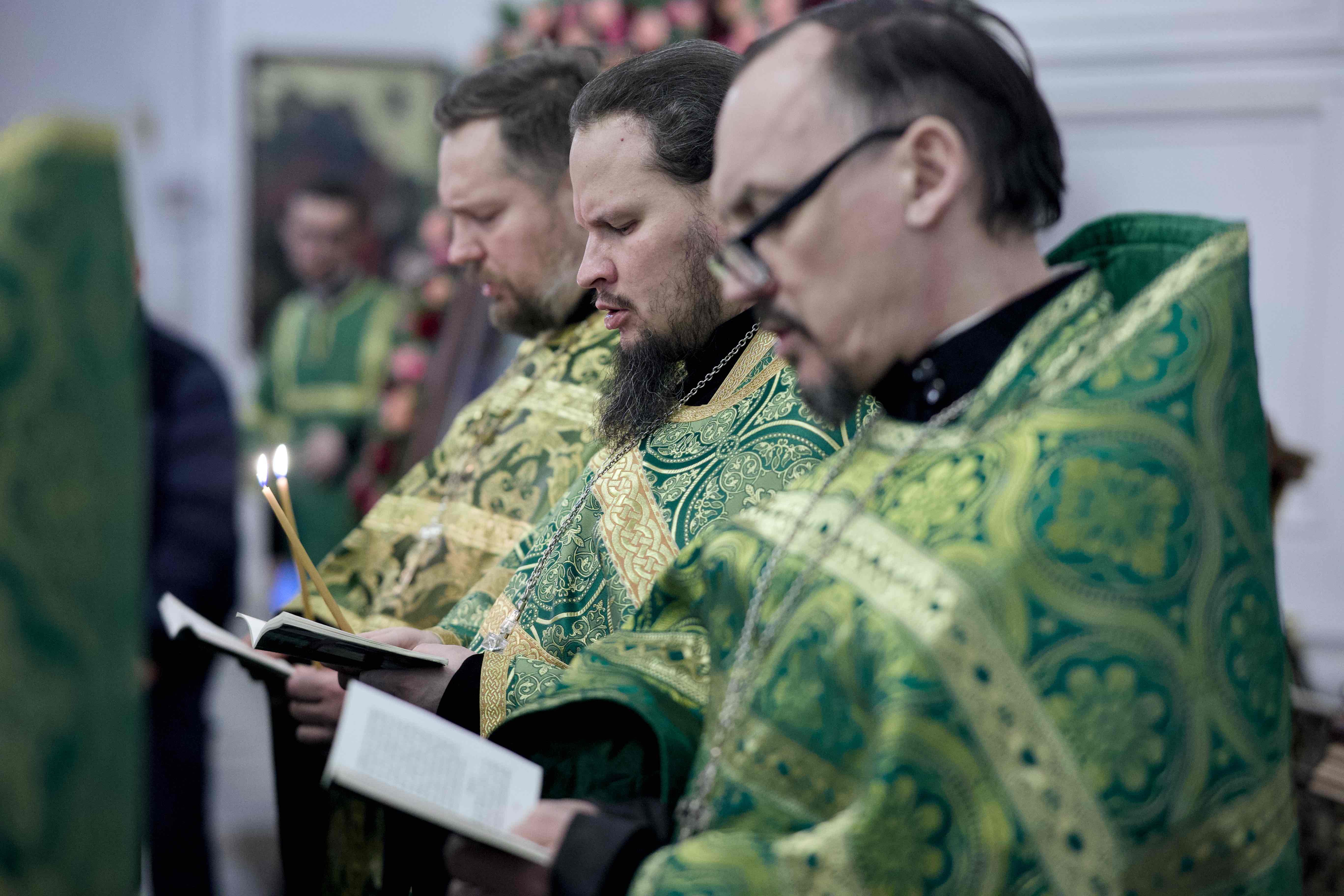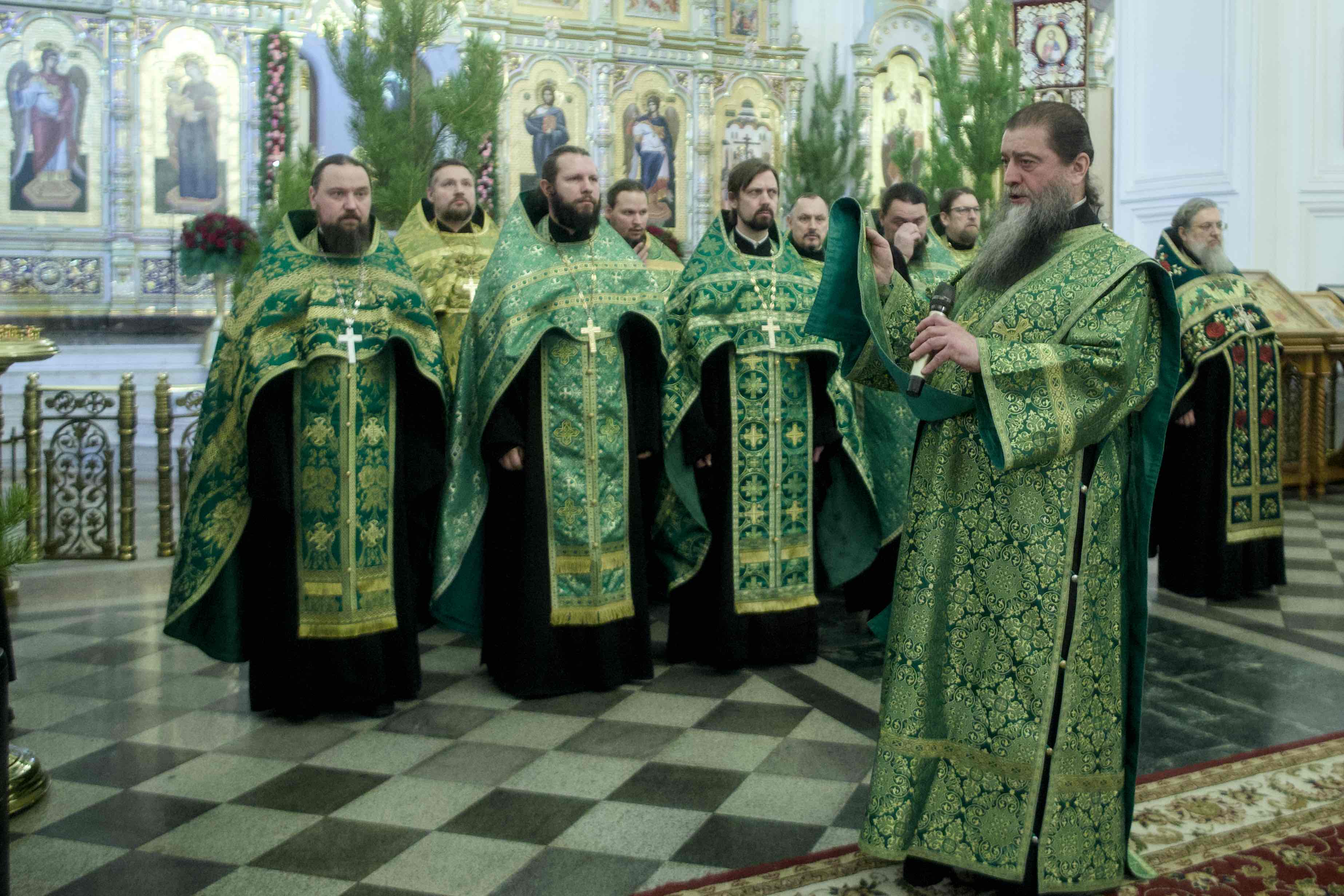 Преосвященным владыкам сослужили секретарь Екатеринбургской епархии, настоятель храма Всех святых города Екатеринбурга протоиерей Николай Тарантин; благочинный Монастырского церковного округа наместник Свято-Николаевского верхотурского монастыря игумен Иероним (Миронов); благочинный Рождественского округа храмов, настоятель прихода во имя Рождества Христова города Екатеринбурга иерей Андрей Юганец; и.о. руководителя спортивно-патриотического отдела Екатеринбургской епархии, настоятель храма в честь Сретения Господня иерей Антоний Клюкин; настоятель храма в честь Сошествия Святого Духа на апостолов «Большой Златоуст» города Екатеринбурга иерей Виктор Явич; настоятель прихода во имя Пресвятой Троицы поселка Староуткинска протоиерей Виктор Вильчинский и настоятели храмов Екатеринбургской епархии; братия Свято-Николаевского мужского монастыря в священном сане и другие клирики митрополии.
