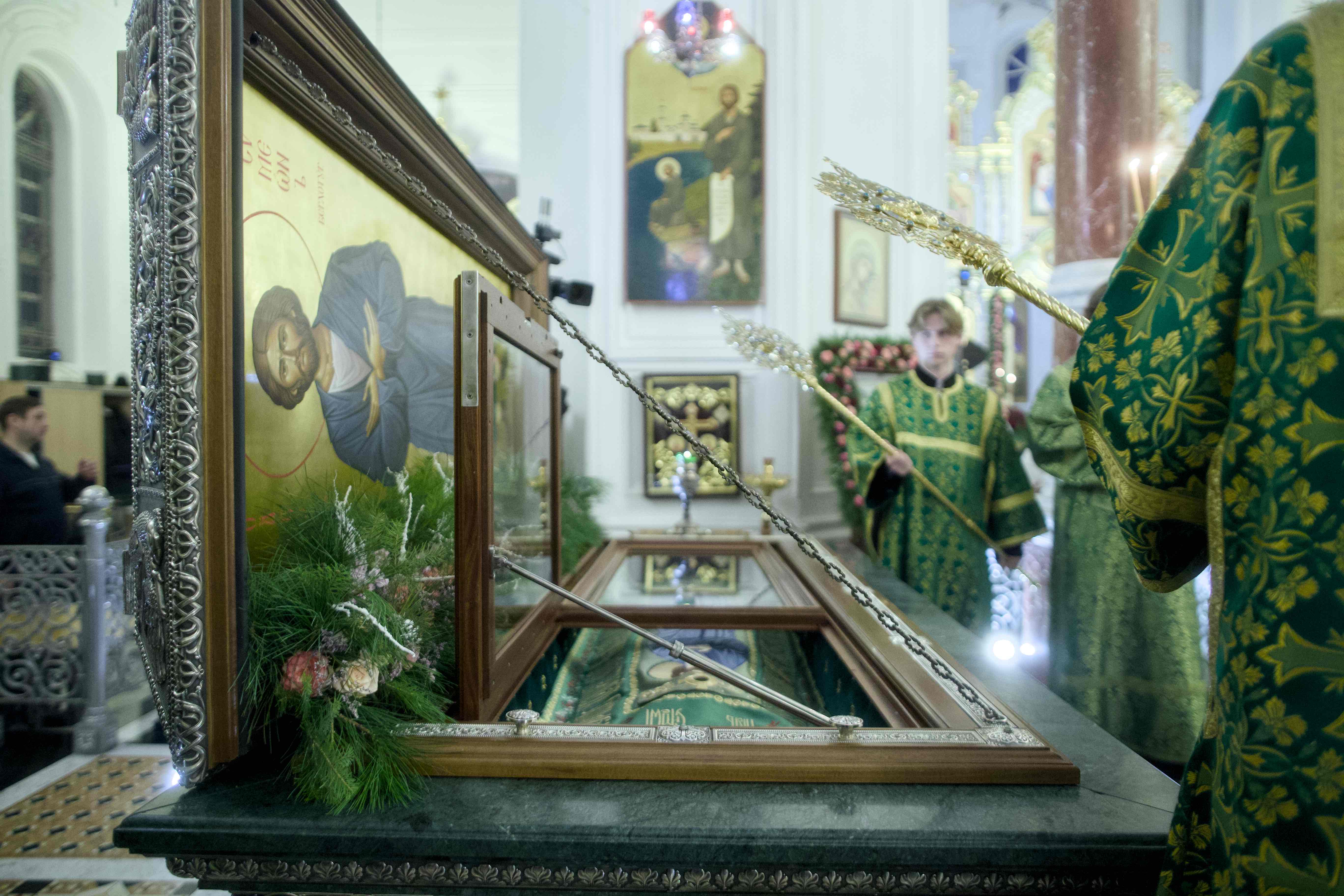 Каждый участник богослужения смог приложиться к святым мощам и был помазан освященным маслом. Елеопомазание у раки со святыней совершали митрополит Евгений и епископ Сергий.