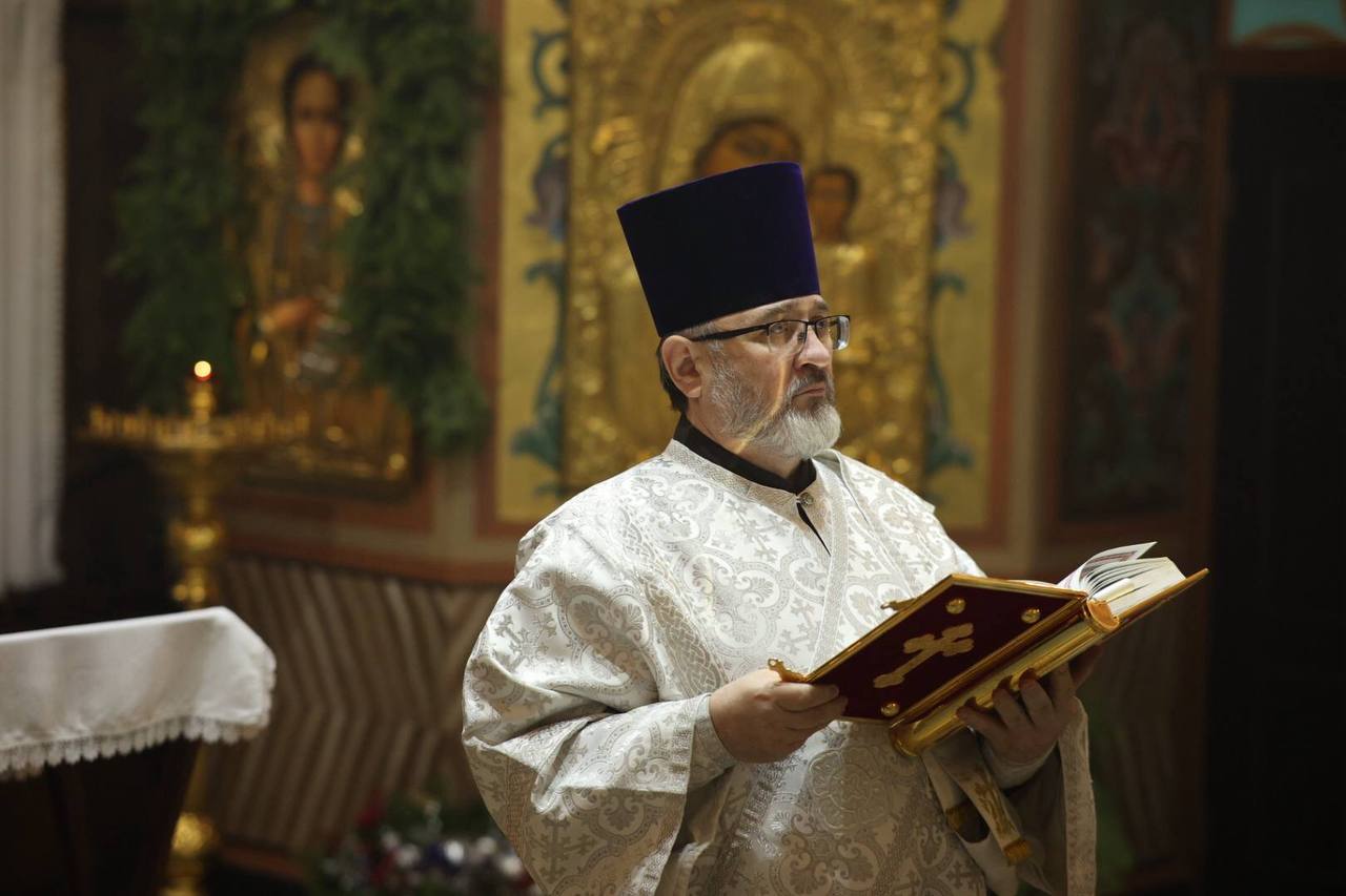 На сугубой ектении были возглашены особые прошения и вознесена молитва о Святой Руси, читаемая по благословению Святейшего Патриарха всея Руси Кирилла во всех православных храмах.