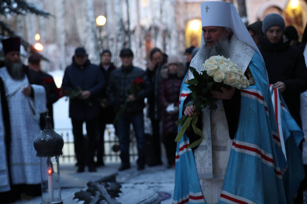 По окончании богослужения митрополит Евгений в сослужении духовенства совершил панихиду по Александру Анатольевичу Козицыну, ушедшему из жизни 17 лет назад и похороненному рядом с храмом. Заупокойное богослужение началось в храме после Божественной литургии и продолжилось на кладбище.