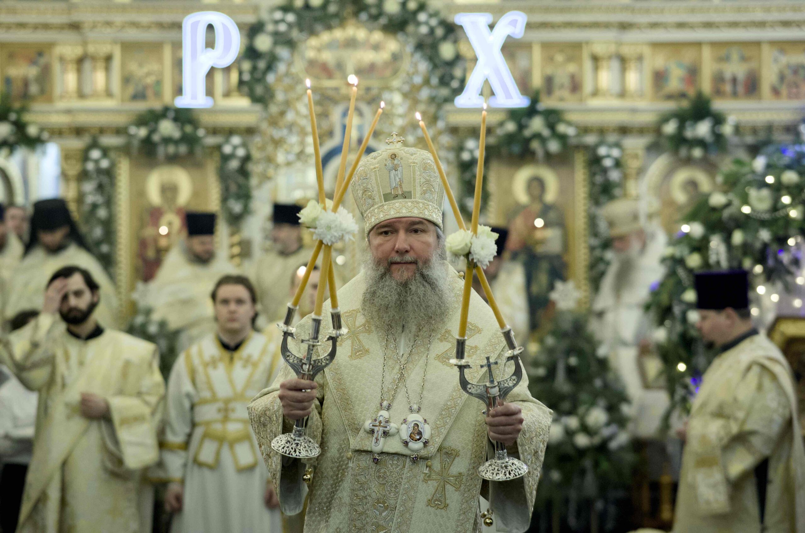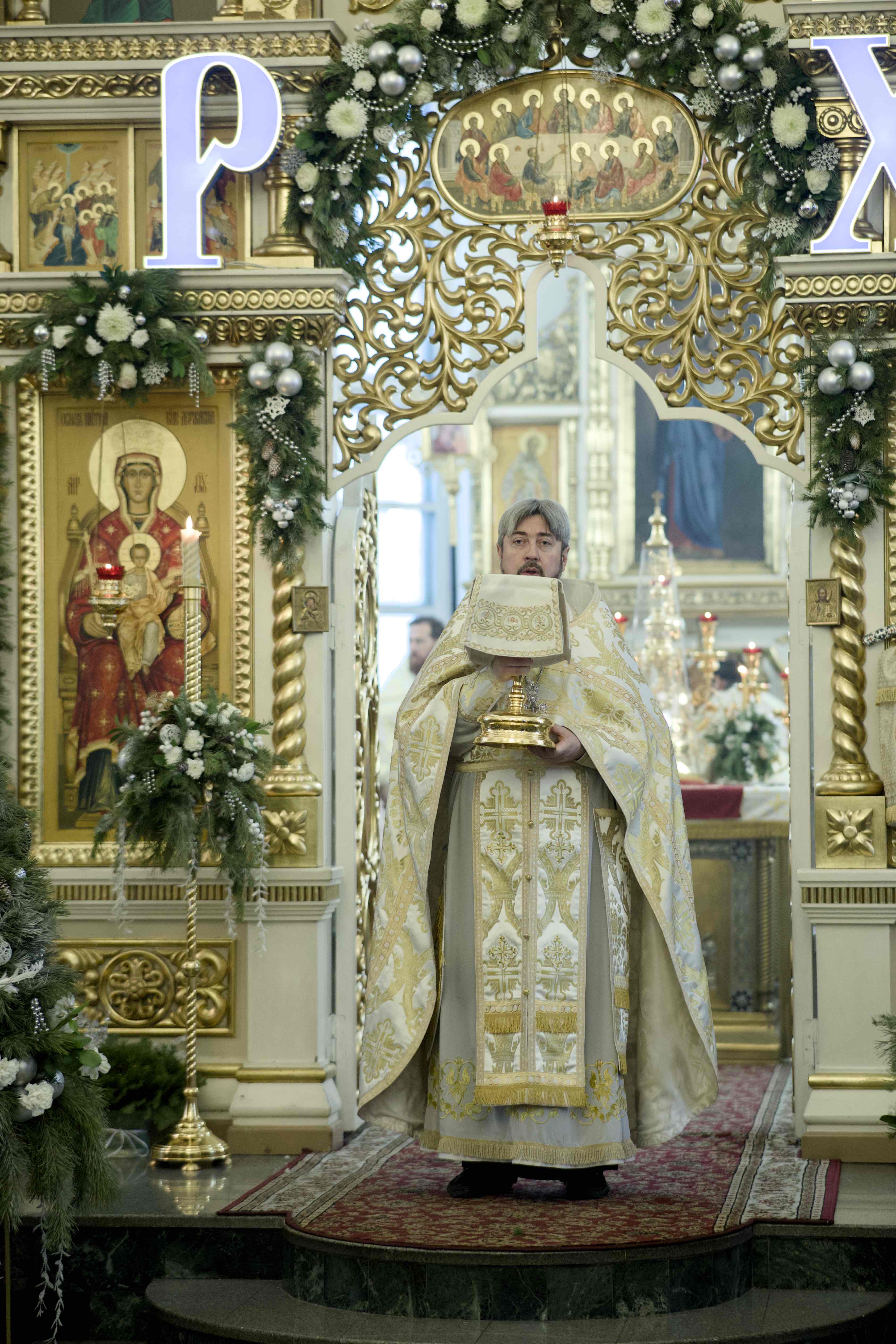 Митрополит Евгений по завершении литургии поздравил собравшихся с праздником Рождества Христова, престольным праздником храма и днем почитания Пресвятой Богородицы – «Честнейшей Херувим и славнейшей без сравнения Серафим – Девы Марии, которая своим произволением, послушанием, верностью Богу привлекла Его благодать, доверие так, что Бог неведомый, непостижимый, невидимый, пожелал воплотиться, стать человеком видимым и осязаемым через Ее лоно, через Ее сердце».
