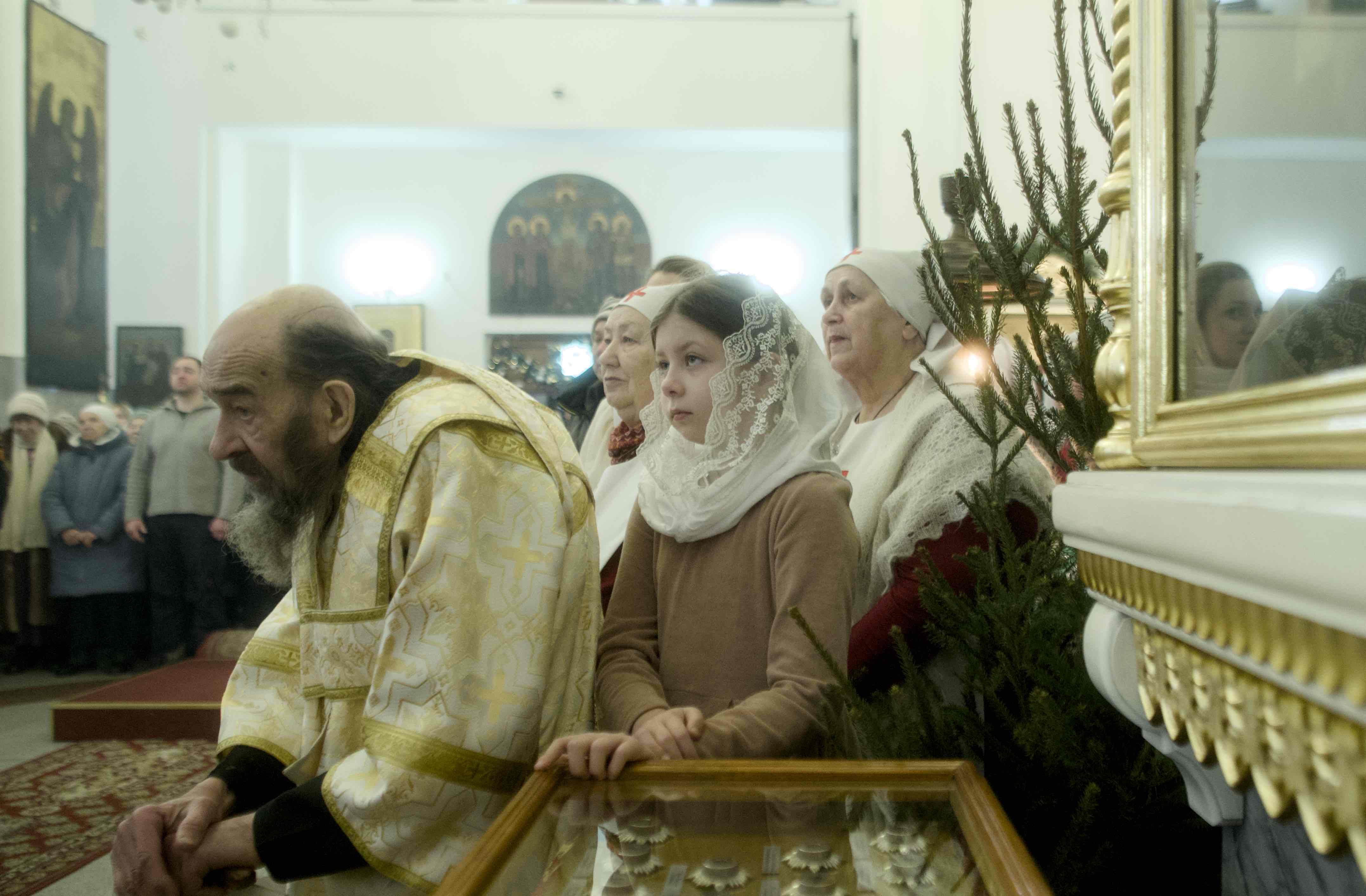 За богослужением были вознесены особые прошения и совершена молитва о святой Руси, читаемая по благословению Патриарха Московского и всея Руси Кирилла.