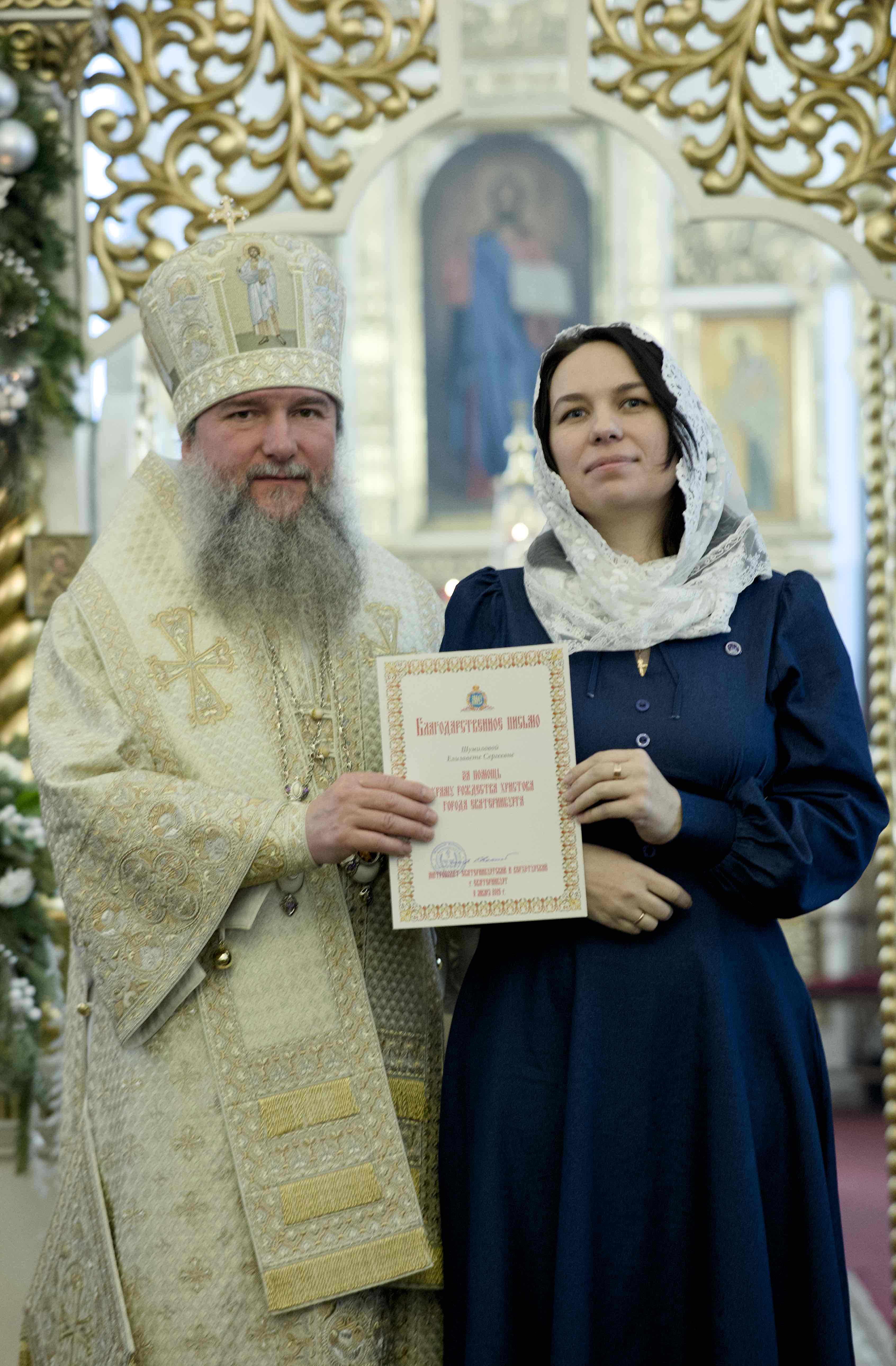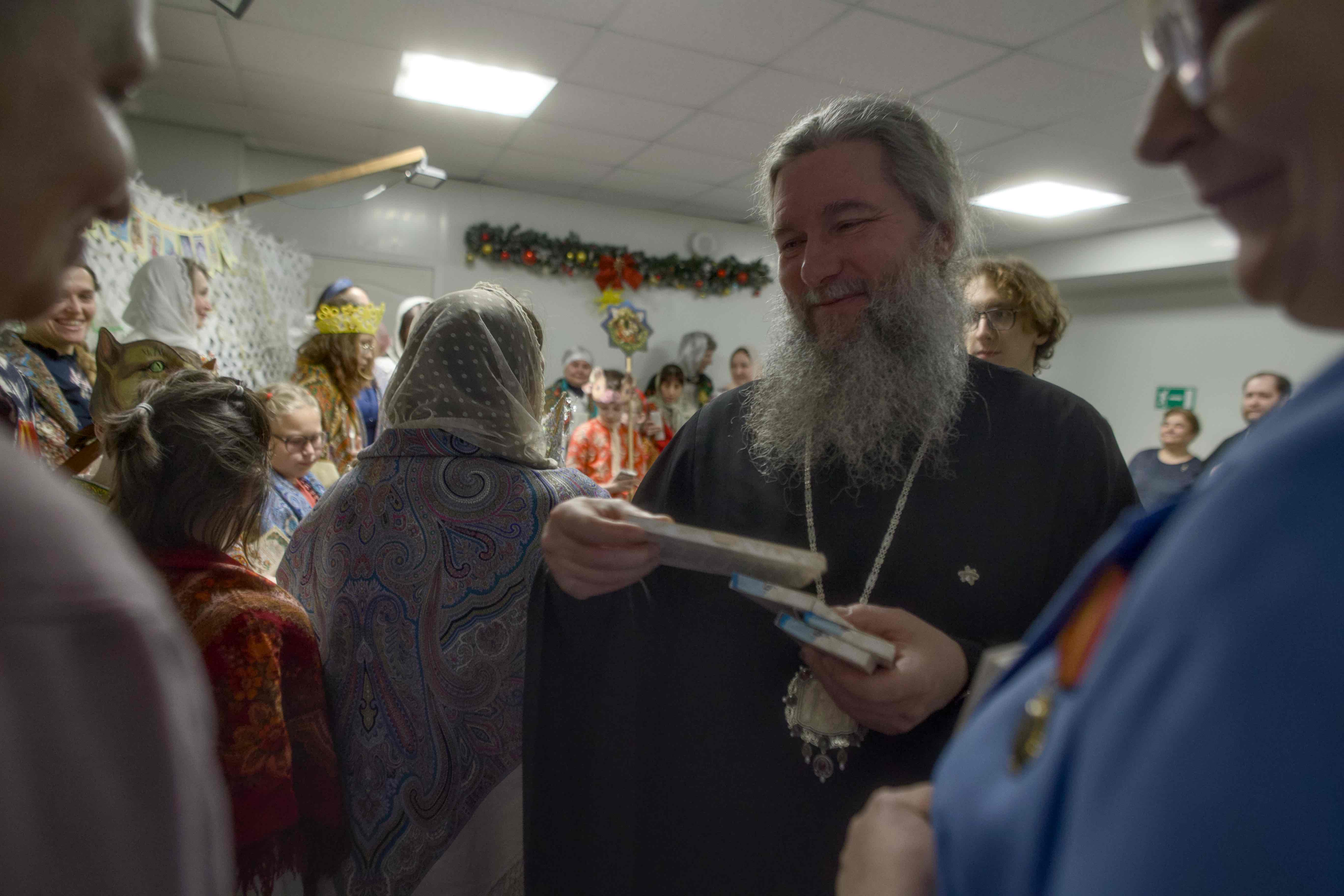 После церемонии награждения в Духовно-просветительском центре Храма Рождества Христова на Уралмаше состоялись традиционные святочные торжества: маленькие христославы — воспитанники воскресной школы — пропели для владыки Евгения рождественские колядки и, как положено, получили сладкие подарки.