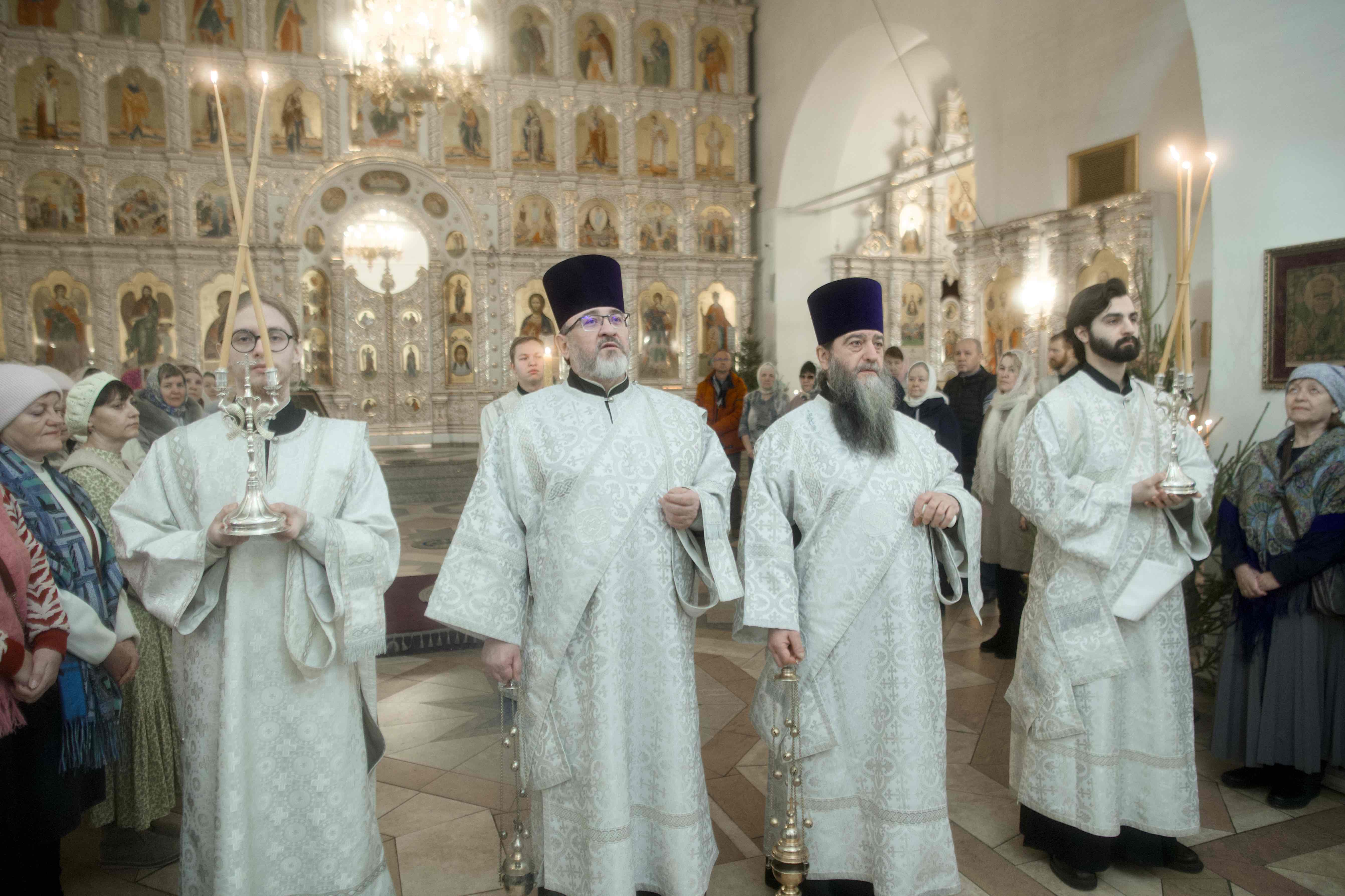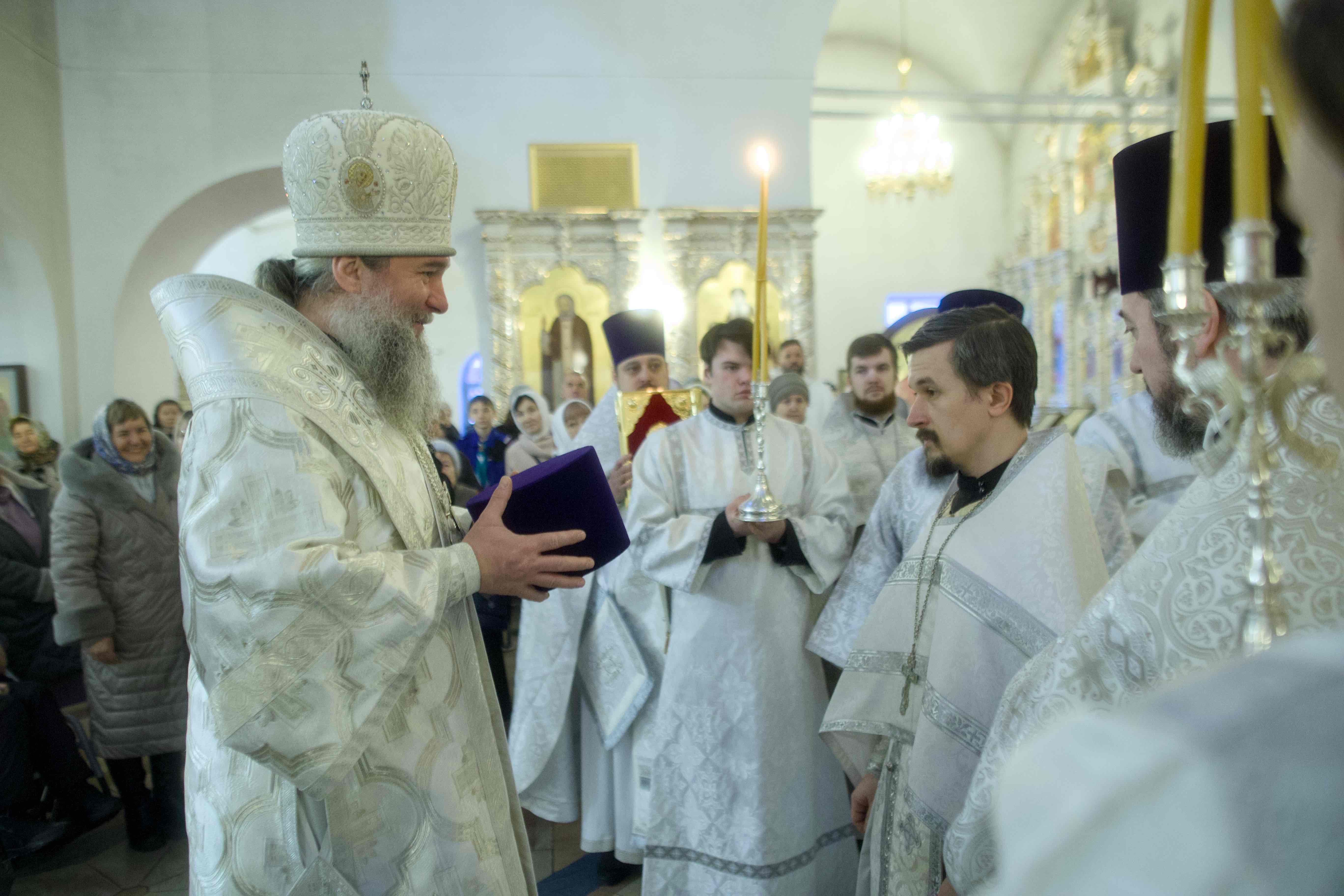 В завершение святочных дней в храме после богослужения прозвучали колядки. Архипастырь благословил верующих, раздал прихожанам «рождественские» шоколадки и с благодарностью принял от детей подарки, сделанные своими руками.