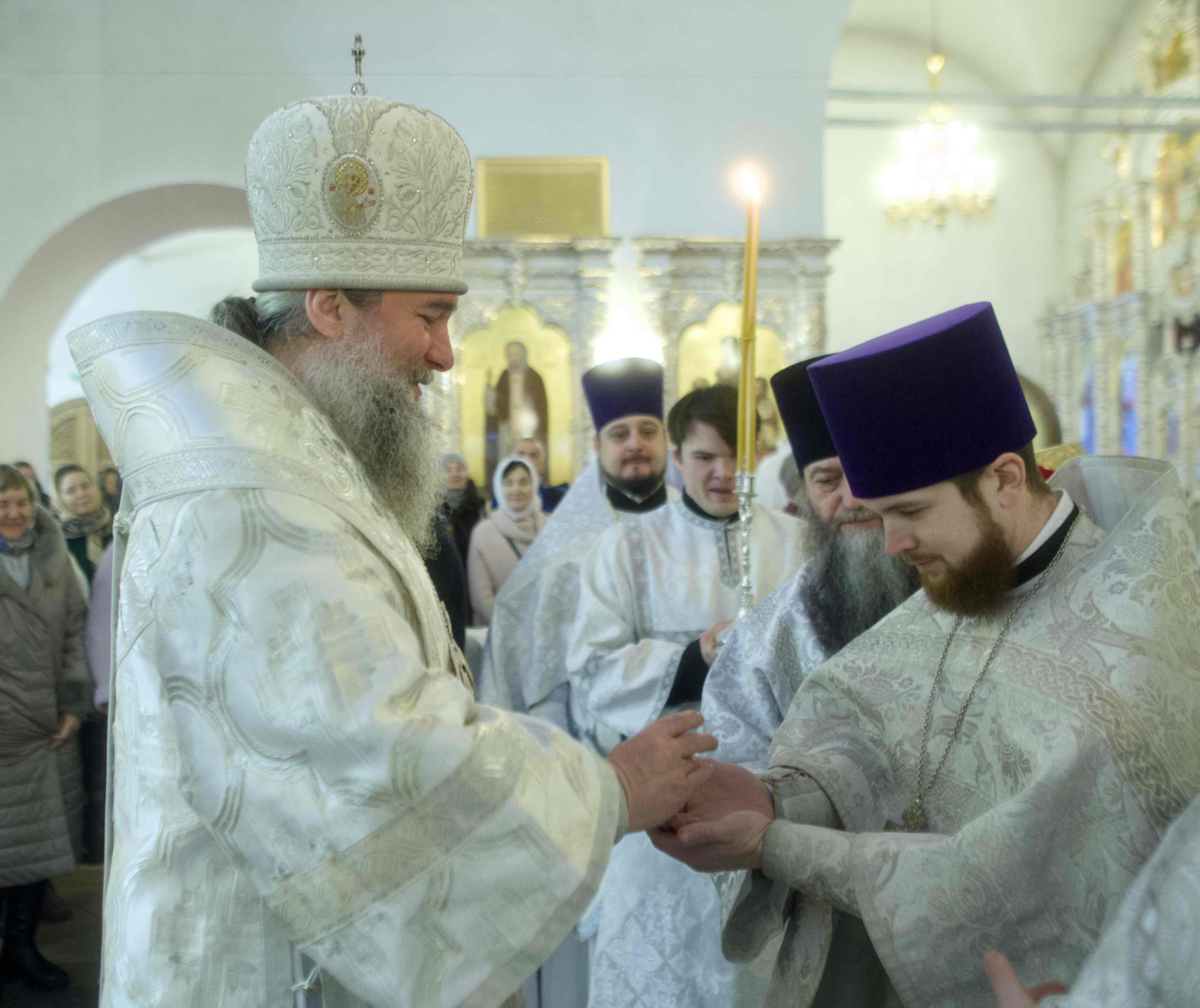 Обращаясь по окончании Божественной литургии к присутствующим с архипастырским словом, владыка Евгений поздравил верующих с Богоявленской субботой, и подчеркнул, что «наши встречи в эти дни в храме предназначены для того, чтобы мы себя по-честному перед Богом задавали себе вопросы: «Кто ты для меня, Господь? Ты просто украшение моей жизни? Ты – просто красивый обряд в моей жизни? Или все-таки Тот, Кто способен очистить внутреннее моей души, Кто способен при моем участии Духом Твоим Святым в Таинстве исповеди «отскоблить» все мои [вредные, — прим. ред.] привычки, все, что накопилось, омыть слезами покаяния, Кровью Твоей в Таинстве причащения, и сделать дом моей души чистым, и светлым, настоящим, в котором хочется и сейчас жить, и в котором хорошо будет в Вечности».
