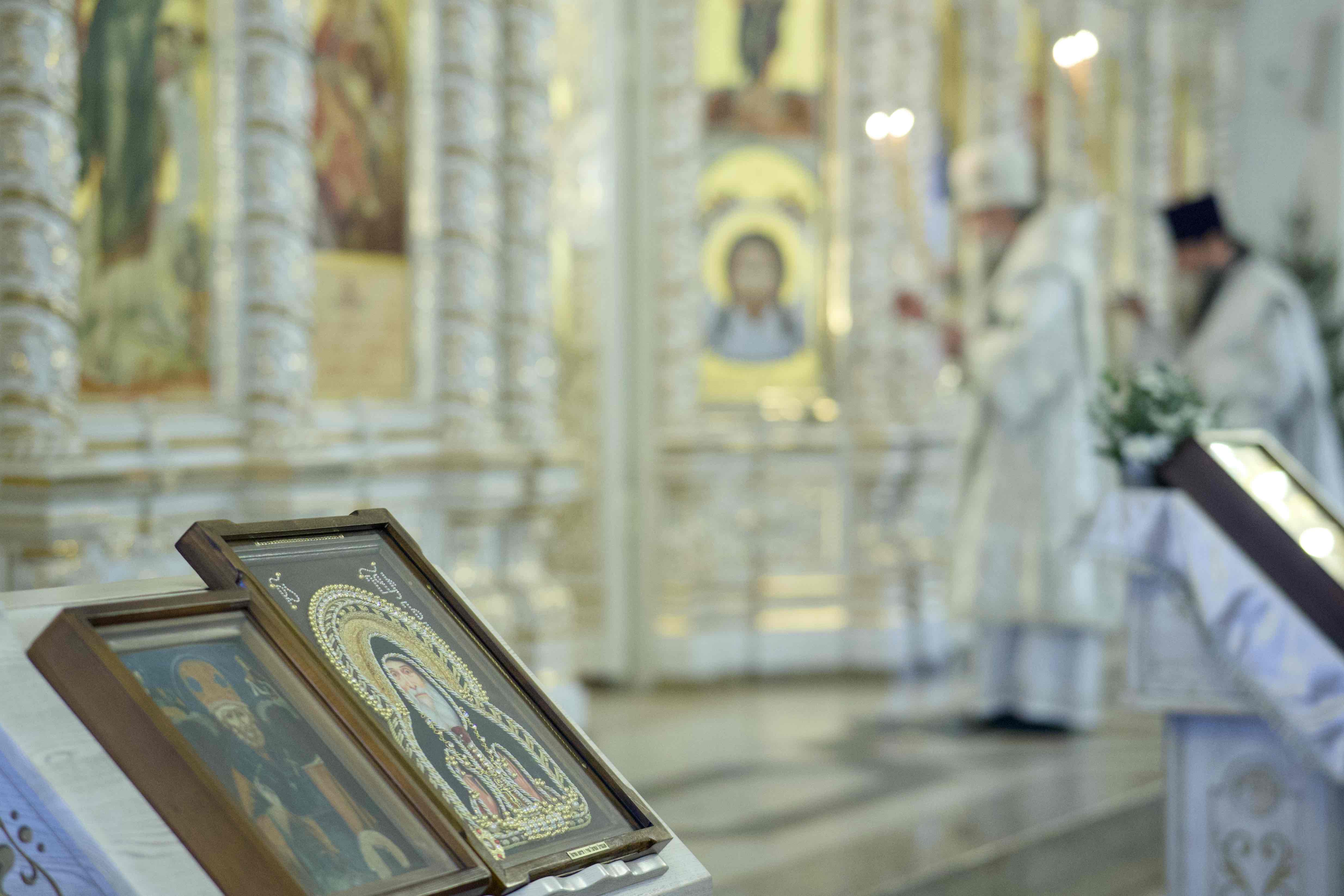 За богослужением была вознесена молитва о Святой Руси, совершаемая в храмах по благословению Святейшего Патриарха Московского и всея Руси Кирилла.