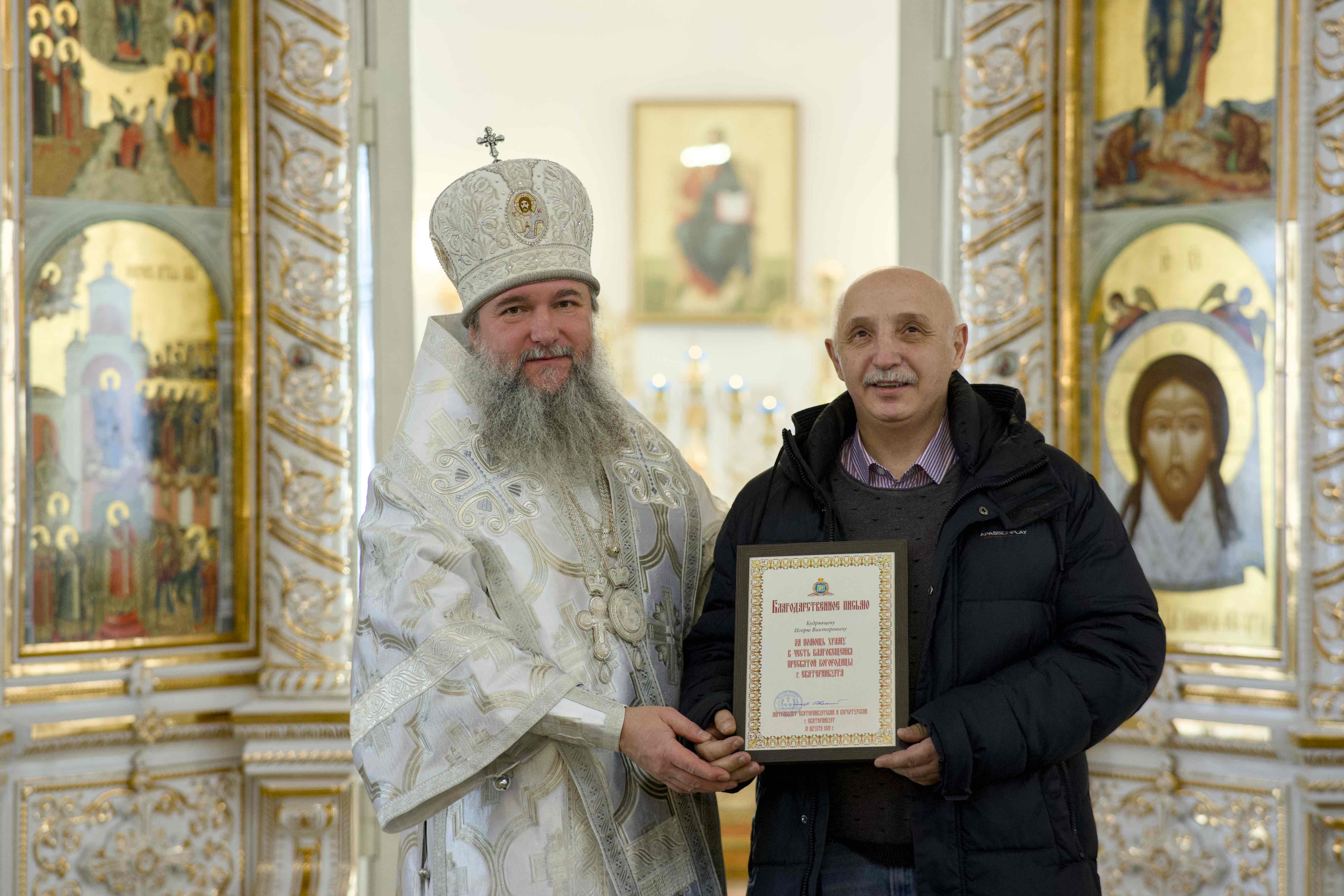 Высокопреосвященному владыке в этот день сослужили секретарь Екатеринбургской епархии, настоятель храма во имя Всех Святых города Екатеринбурга протоиерей Николай Тарантин, руководитель миссионерского отдела Екатеринбургской епархии, настоятель храма в честь Благовещения Пресвятой Богородицы иерей Даниил Рябинин, духовенство храма и другие клирики Екатеринбургской епархии.