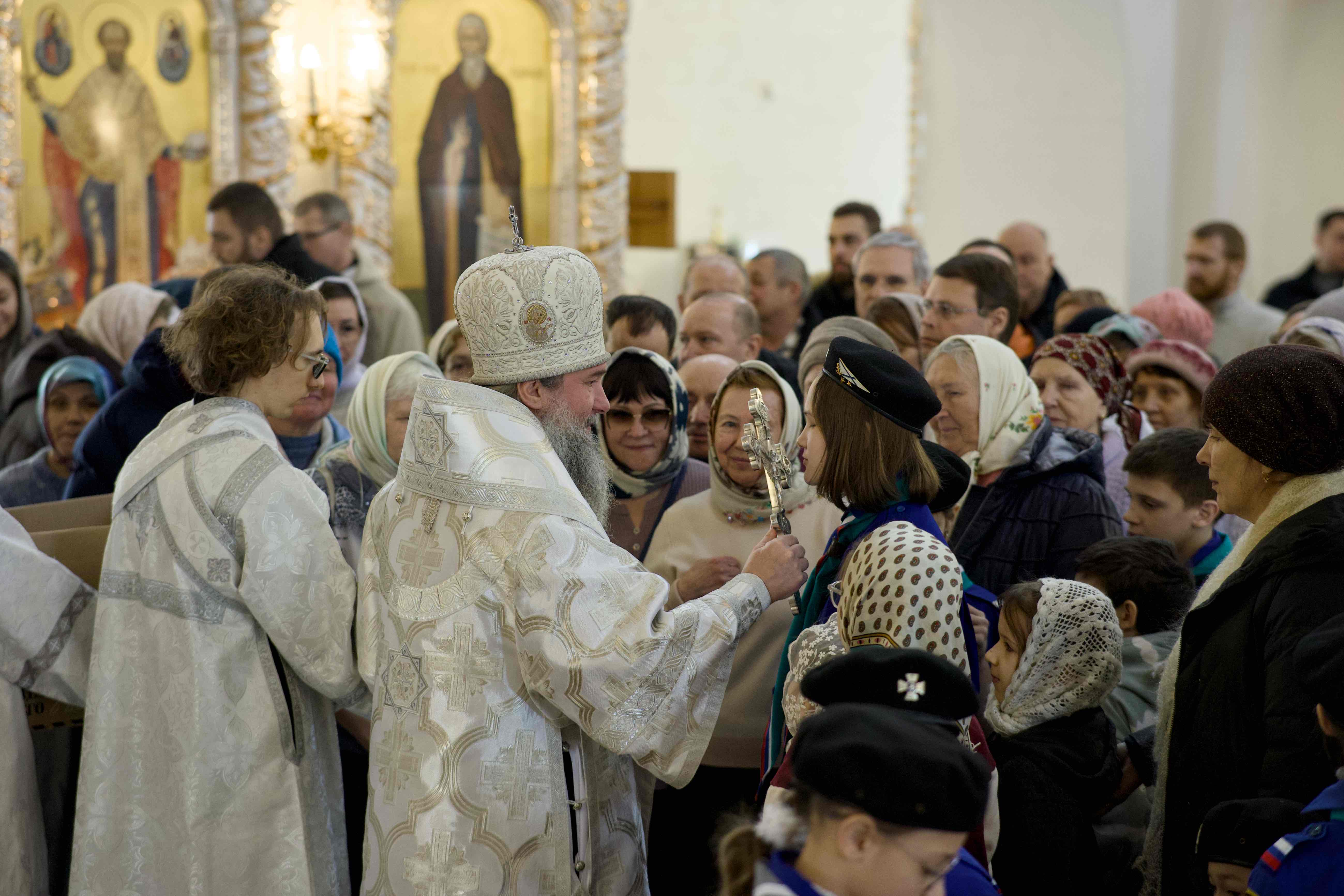 Святое Причастие в этот день совершалось из четырех Чаш — разделить радость молитвенного общения с главой митрополии собрался почти весь приход, известный как один из самых «молодых», поскольку здесь духовно окормляются молодые семьи с детьми.