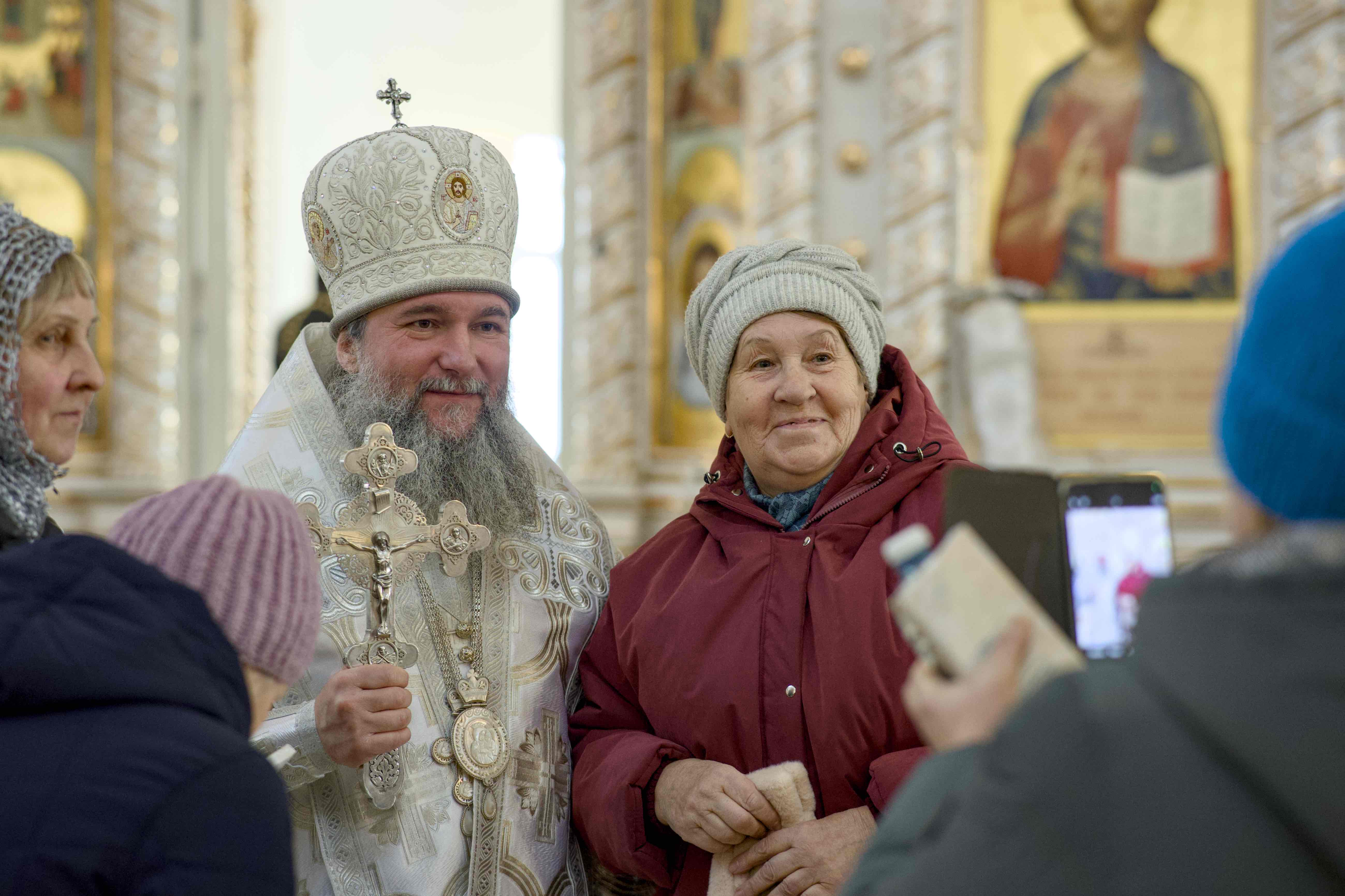 Среди участников Литургии в этот день – гости из разных городов, в том числе из Челябинска, Кургана, Воронежа. Каждый просил разрешение сфотографироваться с владыкой, чтобы увезти из города святой Екатерины зримую память о сегодняшнем благодатном богослужении Богоявленской субботы.