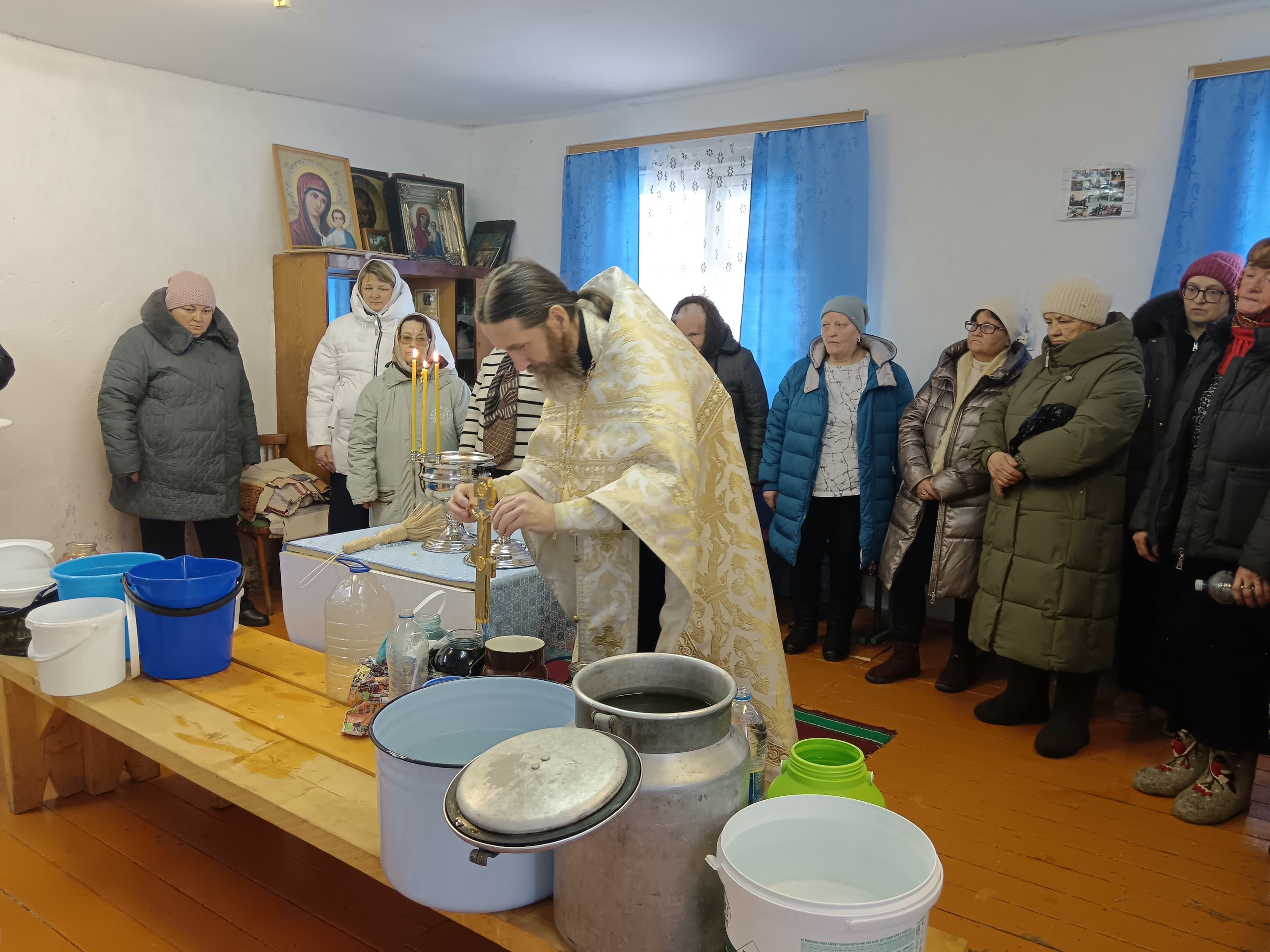 Отец Андрей Федореев освятил воду и в храме во имя иконы Казанской Божией Матери села Киргишаны, и в молельном доме деревни Накоряково, и поздравил всех верующих с праздником Крещения Господня.