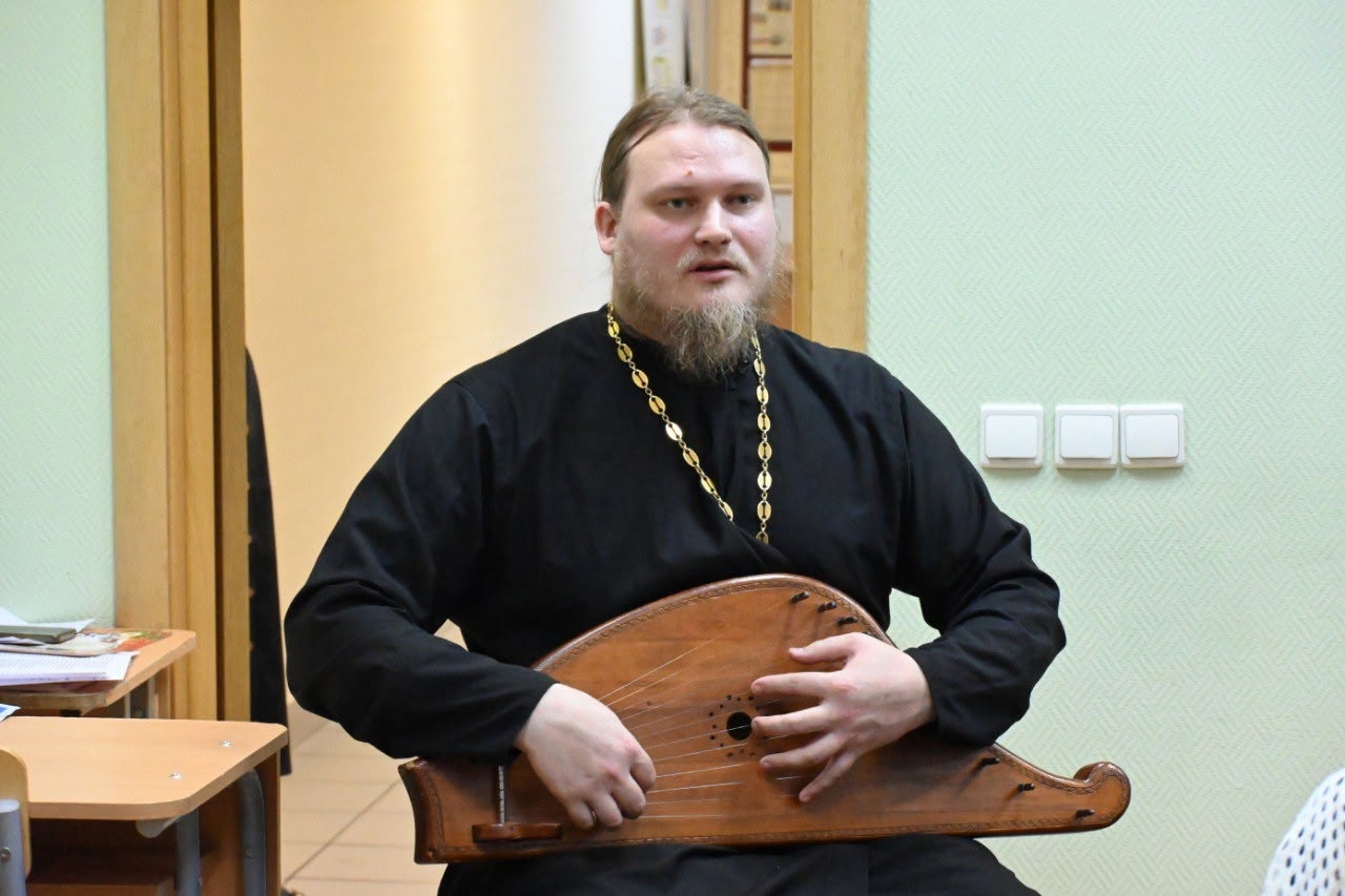 Для ребят организаторы приготовили музыкальный подарок: на встречу с победителями викторины специально приехал из Ачита батюшка-гусляр, иерей Александр Астраханцев, настоятель храма во имя Архангела Михаила. Он представил целый концерт с колядками, кантами, русскими народными песнями.