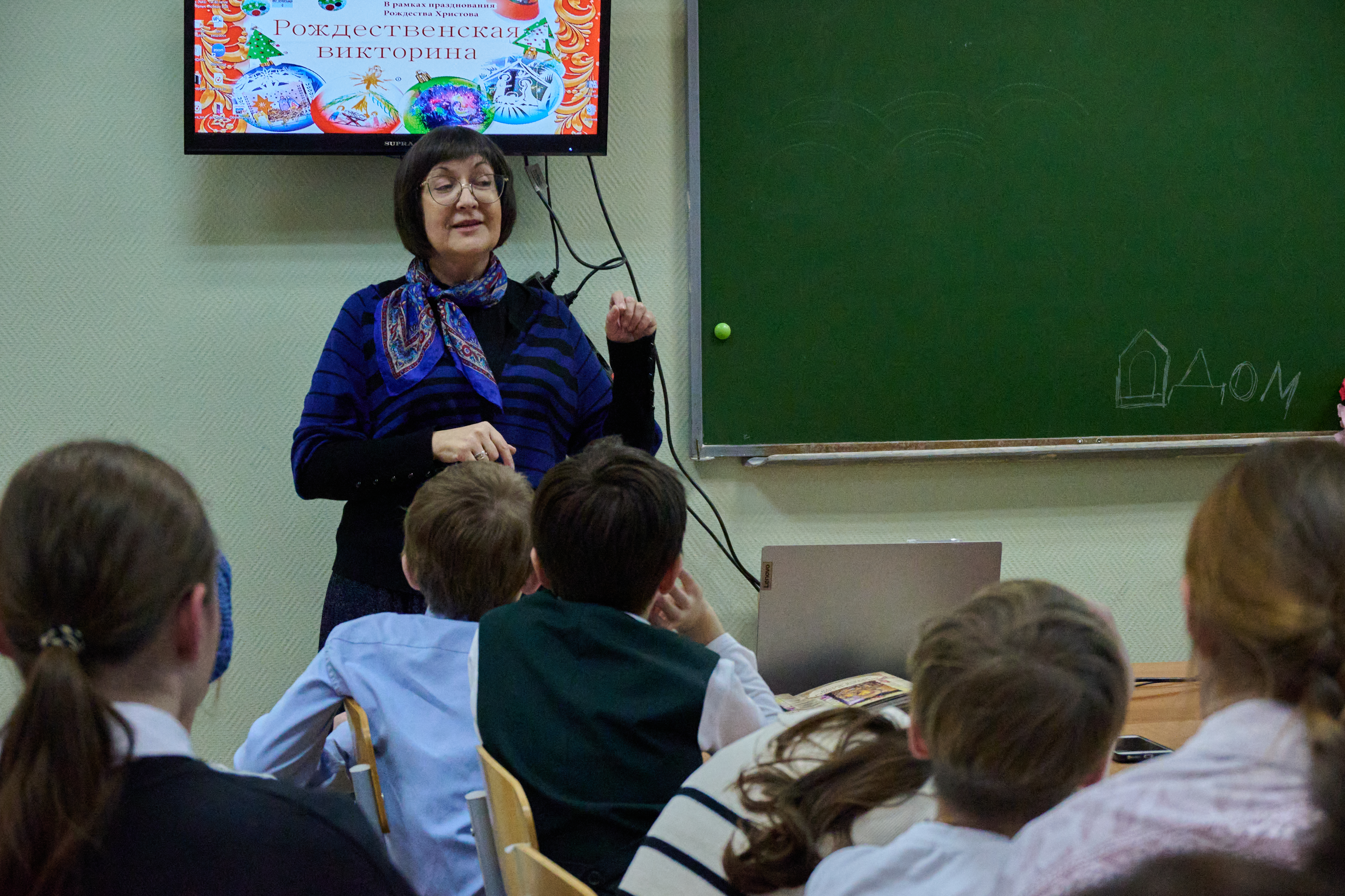 Гости «побывали» у Вифлеемской иконы Божией Матери в Вифлееме и рассмотрели святой образ Пресвятой Богородицы в храме Рождества Христова. Ведущая православного телеканала «Союз» Светлана Ладина рассказала об особенностях изображения иконы Пресвятой Богородицы и показала ребятам фрагмент фильма-исследования о ней. Ребята смотрели фильм с большим интересом и получили в подарок книгу «Вифлеемская улыбка Пресвятой Богородицы».