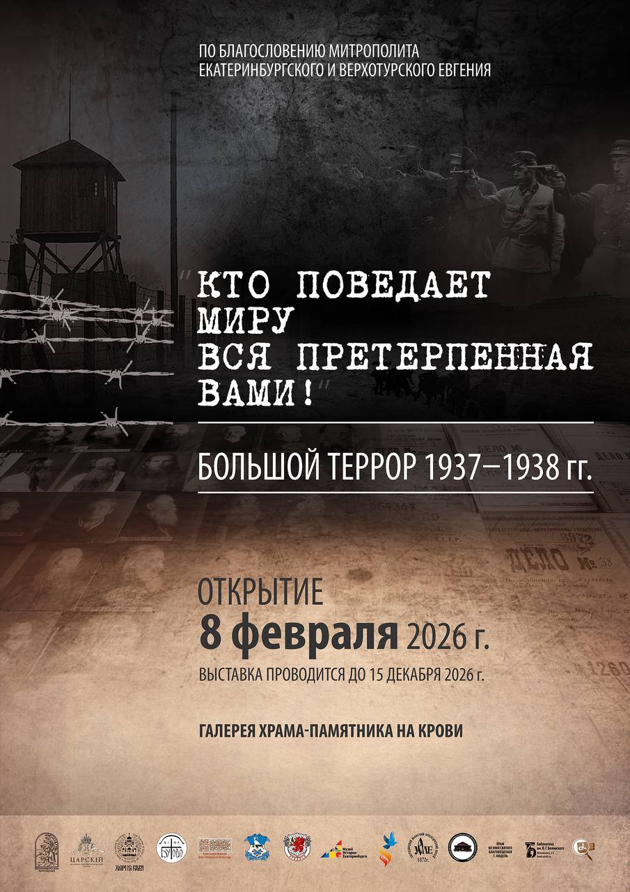 По благословению митрополита Екатеринбургского и Верхотурского Евгения 8 февраля 2026 года в праздник Собора новомучеников и исповедников Церкви Русской после Божественной литургии в 11:30 в Храме-Памятнике на Крови состоится торжественное открытие выставки «»Кто поведает миру вся претерпенная вами». Большой террор 1937-1938 гг.».