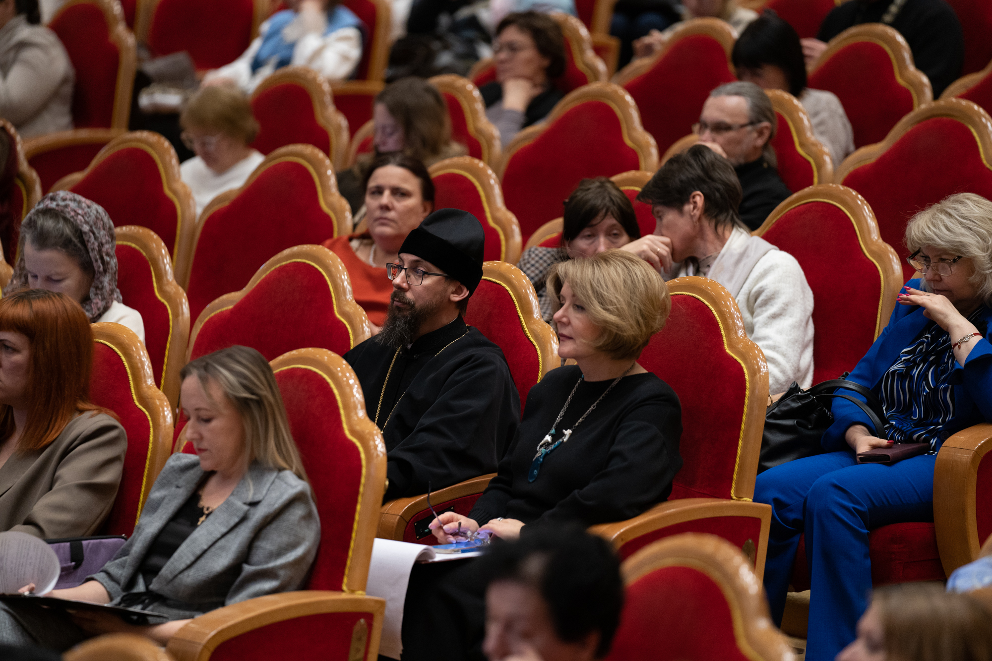 Работа конференции началась с приветственных слов сопредседателей, в которых была подчеркнута значимость модуля «Основы православной культуры» как важной части системы духовно-нравственного воспитания, а также необходимость устойчивого и содержательного взаимодействия школы и Церкви в современных условиях.