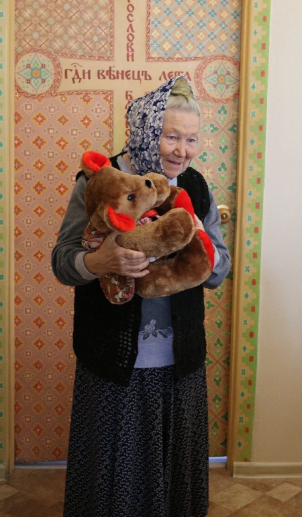 И сестры, и прихожане обители уверены, что приобрели молитвенницу на Небе. Мы смотрим на ее лицо, запечатленное на фотографиях: вот она несет на крестном ходу икону Иверской иконы Божией Матери, вот она держит Евангелие на Светлой седмице, когда в храме в связи с карантинными мерами было немного народу, а вот в руках Г. Ф. Малышевой медведь, которого сшил специально для нее воспитанник детского дома № 1 Николай. Такой вот отклик любви! Такой она останется в нашей памяти!