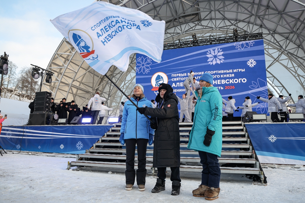 На фото: открытие Первых Зимних спортивных игр Александра Невского, объединившие 25 юношеских команд, состоялось 8 февраля 2026 года в парке «Песчанка» Всеволожского района Ленинградской области.