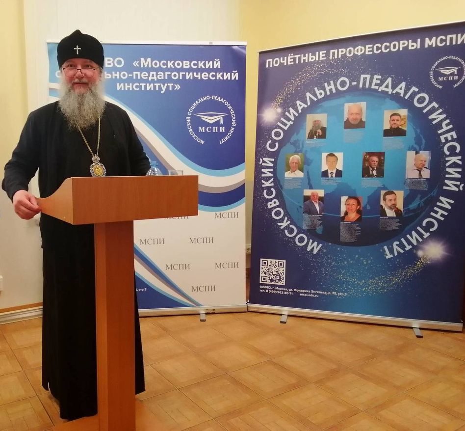 Участников встречи и гостей МСПИ поприветствовал ректор вуза Дмитрий Алексеевич Мельников, он представил владыку как иерарха Русской Православной Церкви, который много делает для сохранения традиций и привносит в свои лекции философский и религиозный акцент, и поблагодарил его за активное участие в жизни педагогического сообщества.