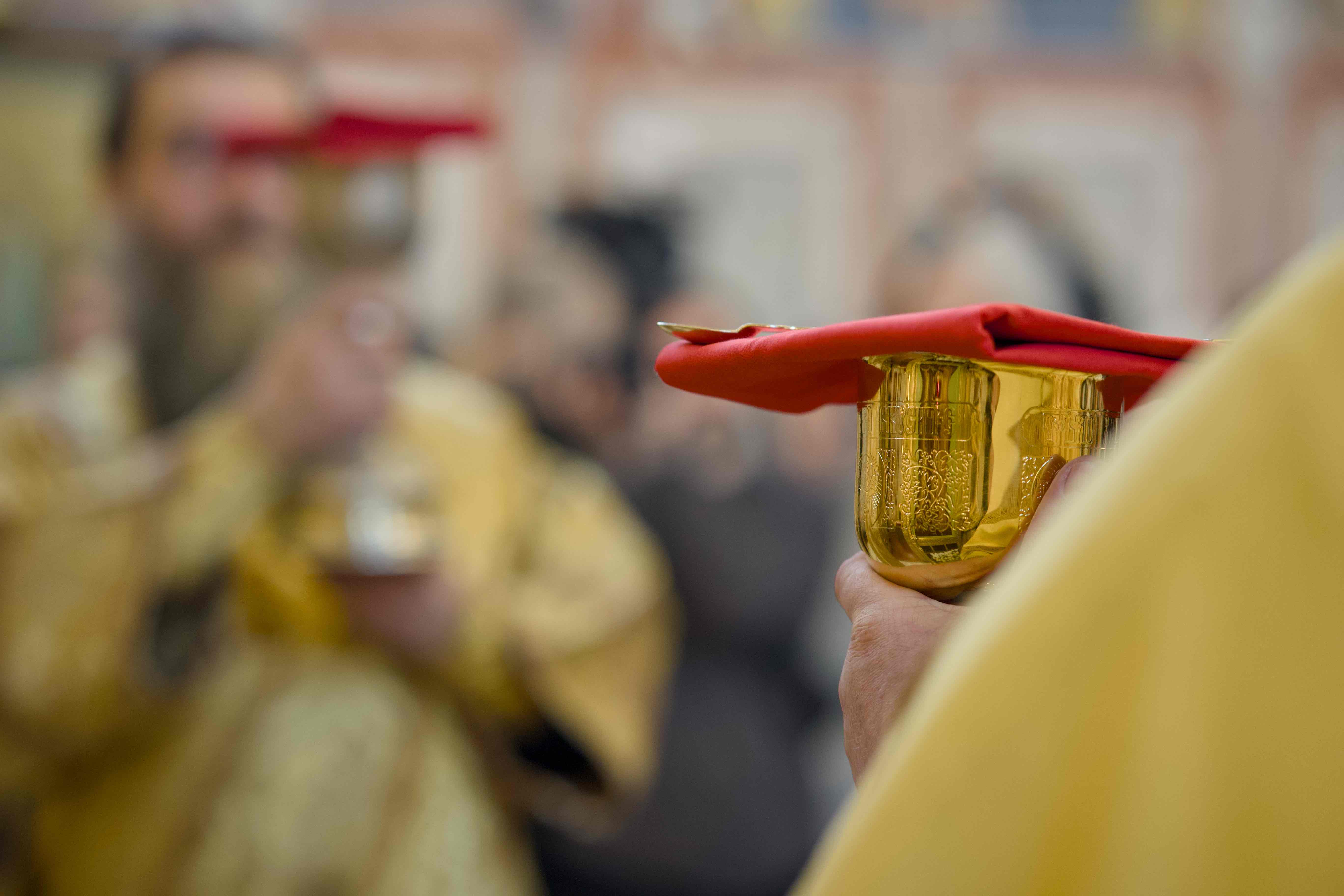 Причастие Святых Христовых Таин в этот день преподавалось из двух Чаш, поскольку в храме собралось множество верующих.