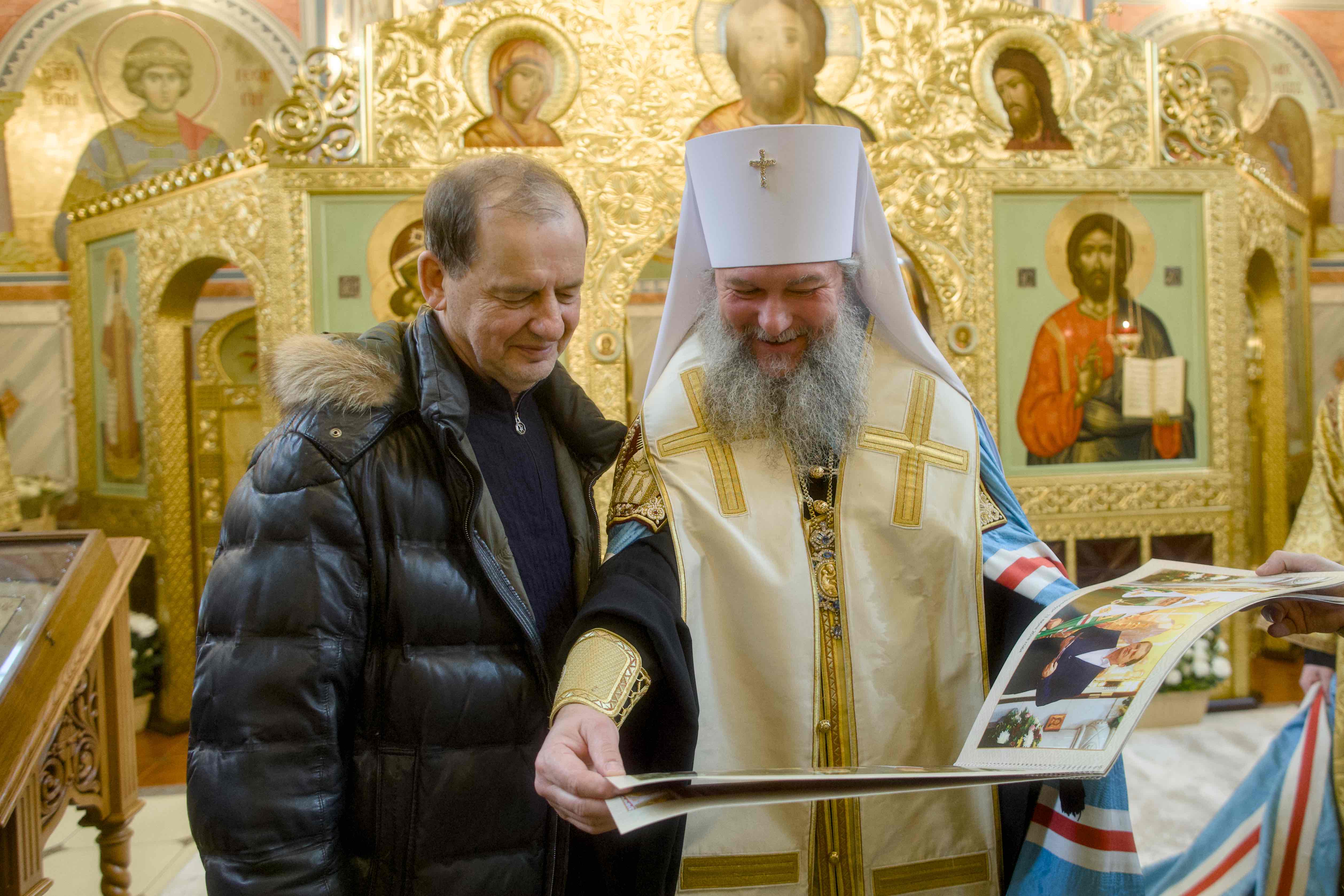 Митрополит Евгений сердечно поблагодарил ктитора храма Андрея Моисеевича Симановского, при участии которого уральская столица обрела Порт-Артурский храм, который ныне радует своих посетителей дивными росписями.