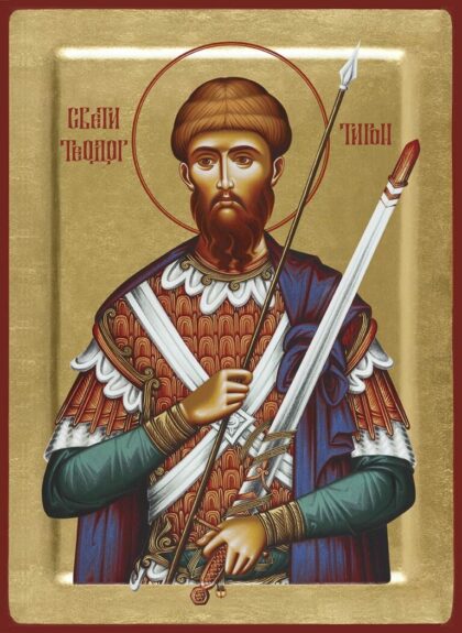 Святой мученик Феодор Тирон был воином в городе Амасии Понтийской области (северо-восточная область Малой Азии, тянувшаяся вдоль берега Понта Эвксинского, т. е. Черного моря). Вместе с другими христианами он был принуждаем отречься от Христа и принести жертву идолам. Оказавшись исполнить это, Феодор был подвергнут жестоким мучениям и заключен в темницу. Здесь во время молитвы он был утешен чудесным явлением Господа Иисуса Христа. Через некоторое время мученика вывели из темницы и разными пытками снова принуждали отречься от Христа. Наконец, видя непреклонность мученика, правитель приговорил его к сожжению. Святой Феодор сам бестрепетно взошел на костер и здесь с молитвой и славословием предал свою душу Богу около 305 года.