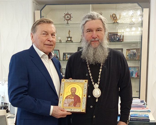 В ходе встречи митрополит Евгений преподнес в дар Владимиру Михайловичу Филиппову икону праведного Евгения Боткина, врача, страстотерпца.