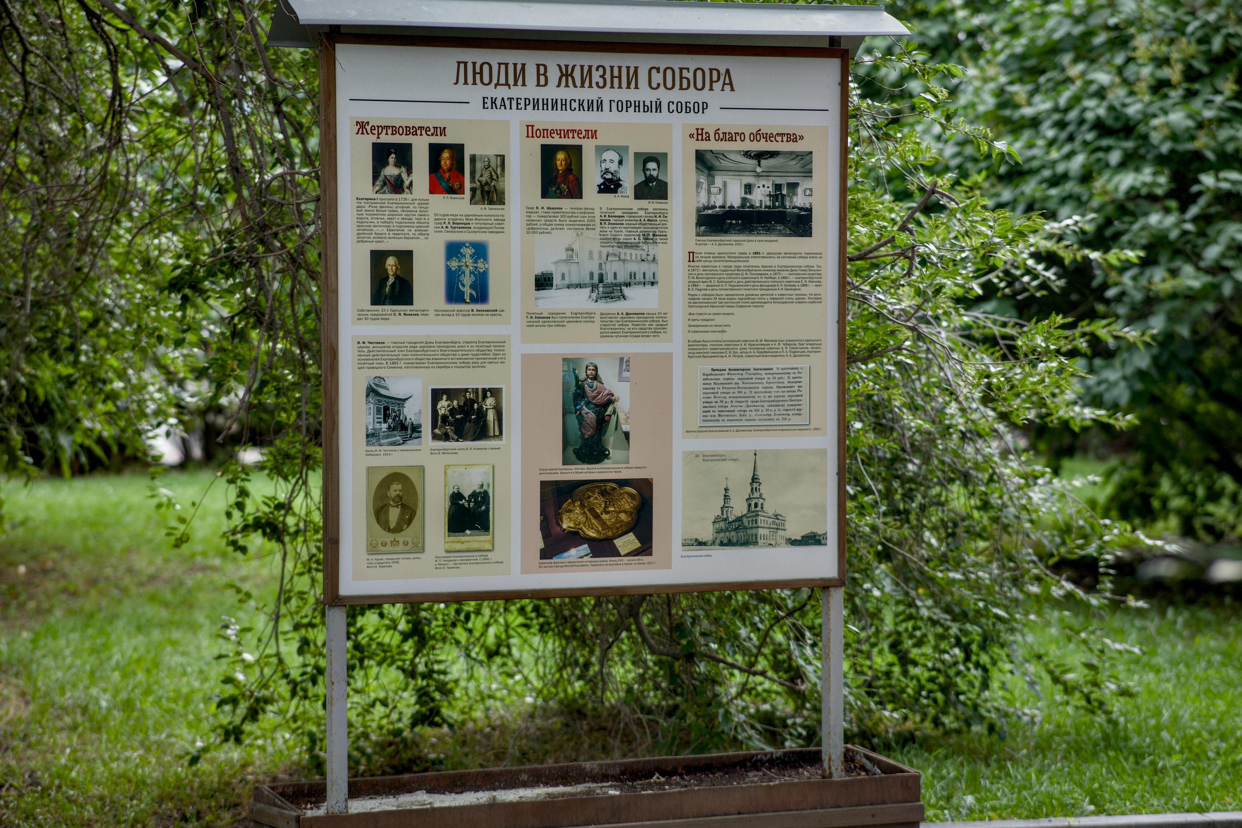 Более ста лет назад в Екатеринбурге было около 20 церквей, но особое место среди них занимал «Градо-Екатеринбургский Екатерининский горный собор». Он располагался на перекрестке Главного проспекта и Пушкинской улицы. Екатеринбуржцы всегда считали Екатерининскую церковь главной. Она была возведена первыми строителями завода-крепости и более 20 лет оставалась единственным храмом нового города.