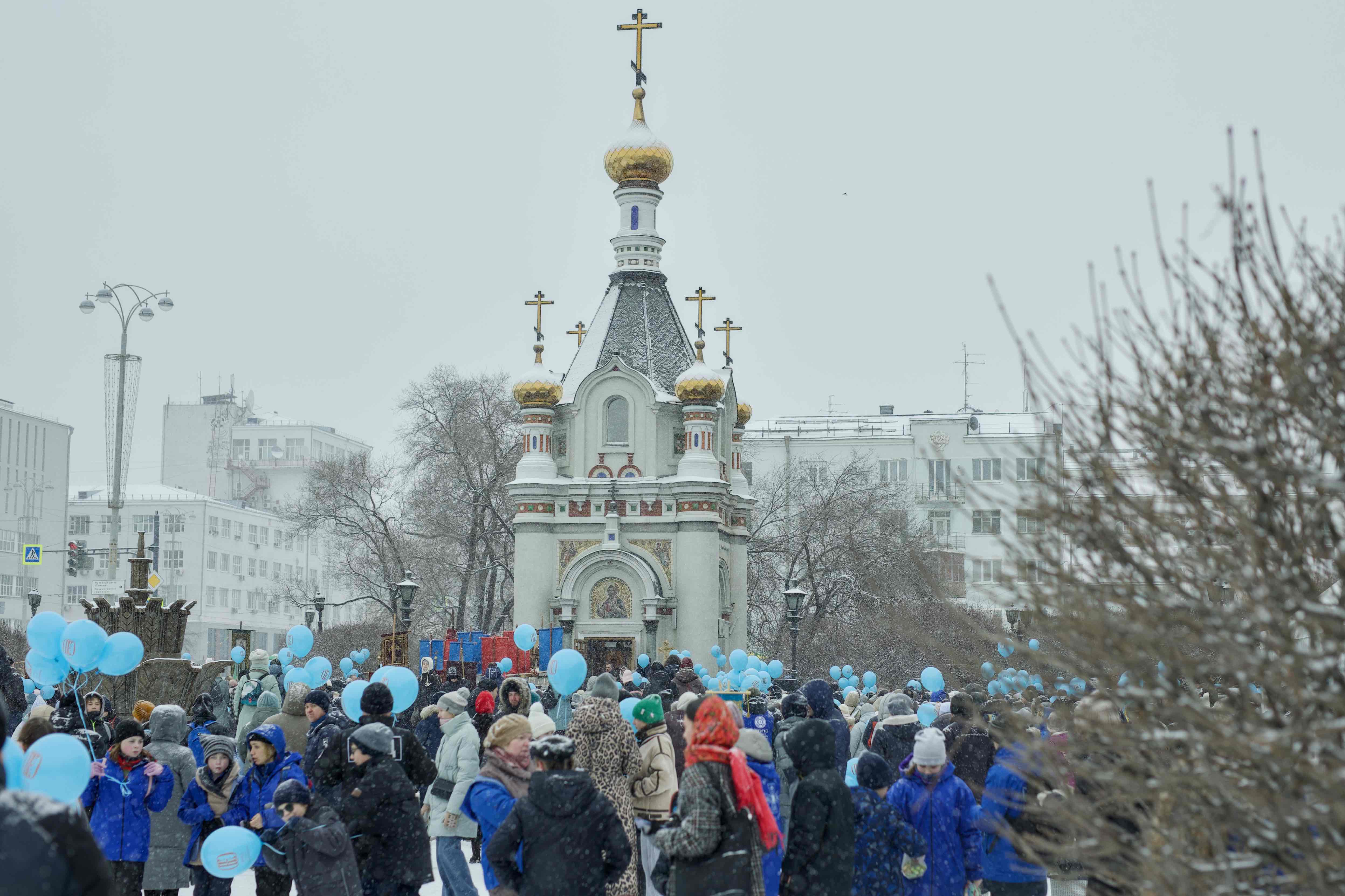 Фото, архив 2025 года: в День памяти Небесной Покровительницы уральской столицы, 7 декабря 2025 года, по завершении Божественной литургии от Свято-Троицкого кафедрального собора совершен общегородской крестный ход до часовни святой Екатерины.