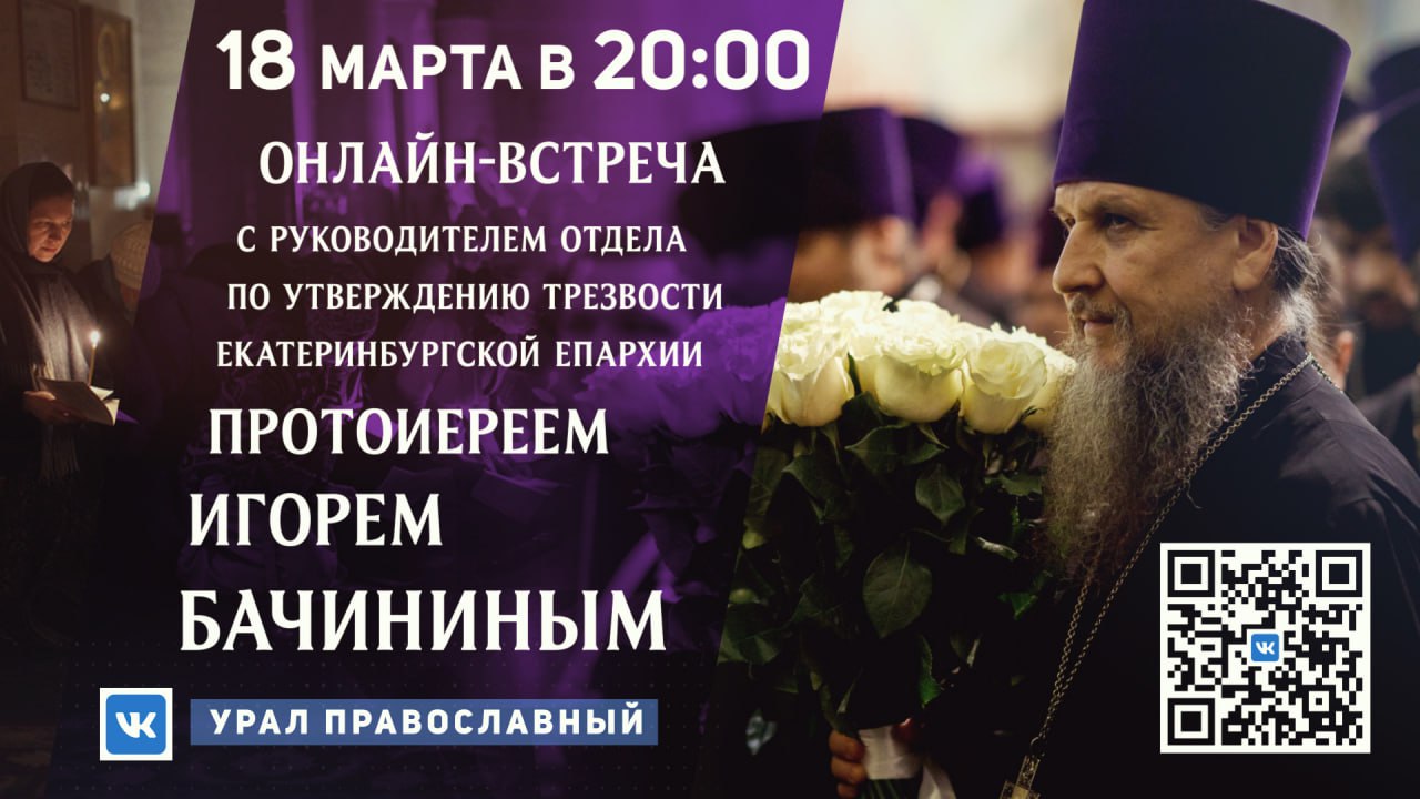 В рамках проекта «Великопостные беседы» в среду, 18 марта 2026 года, с 20:00 (время уральское) в нашем сообществе состоится встреча с председателем епархиального Отдела по утверждению трезвости и профилактике зависимостей, главой Иоанно-Предтеченского братства «Трезвение» Русской Православной Церкви, настоятелем Никольского храма при Уральском горном университете протоиереем Игорем Бачининым.