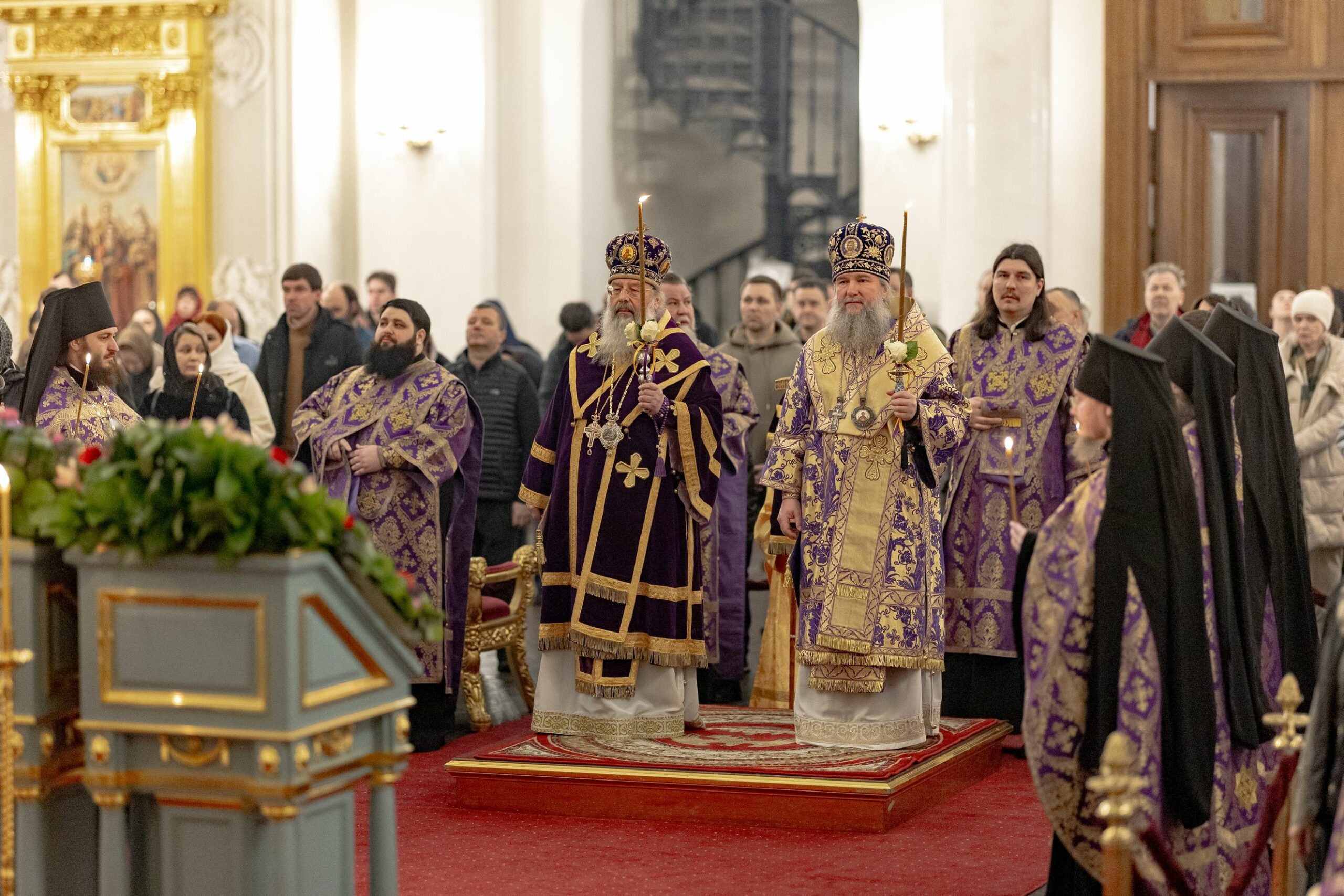 Вечером 14 марта 2026 года, в канун Недели третьей Великого поста, Крестопоклонной, митрополит Казанский и Татарстанский Кирилл и митрополит Екатеринбургский и Верхотурский Евгений совершили всенощное бдение в кафедральном соборе Казанской иконы Божией Матери Казанского Богородицкого мужского монастыря.