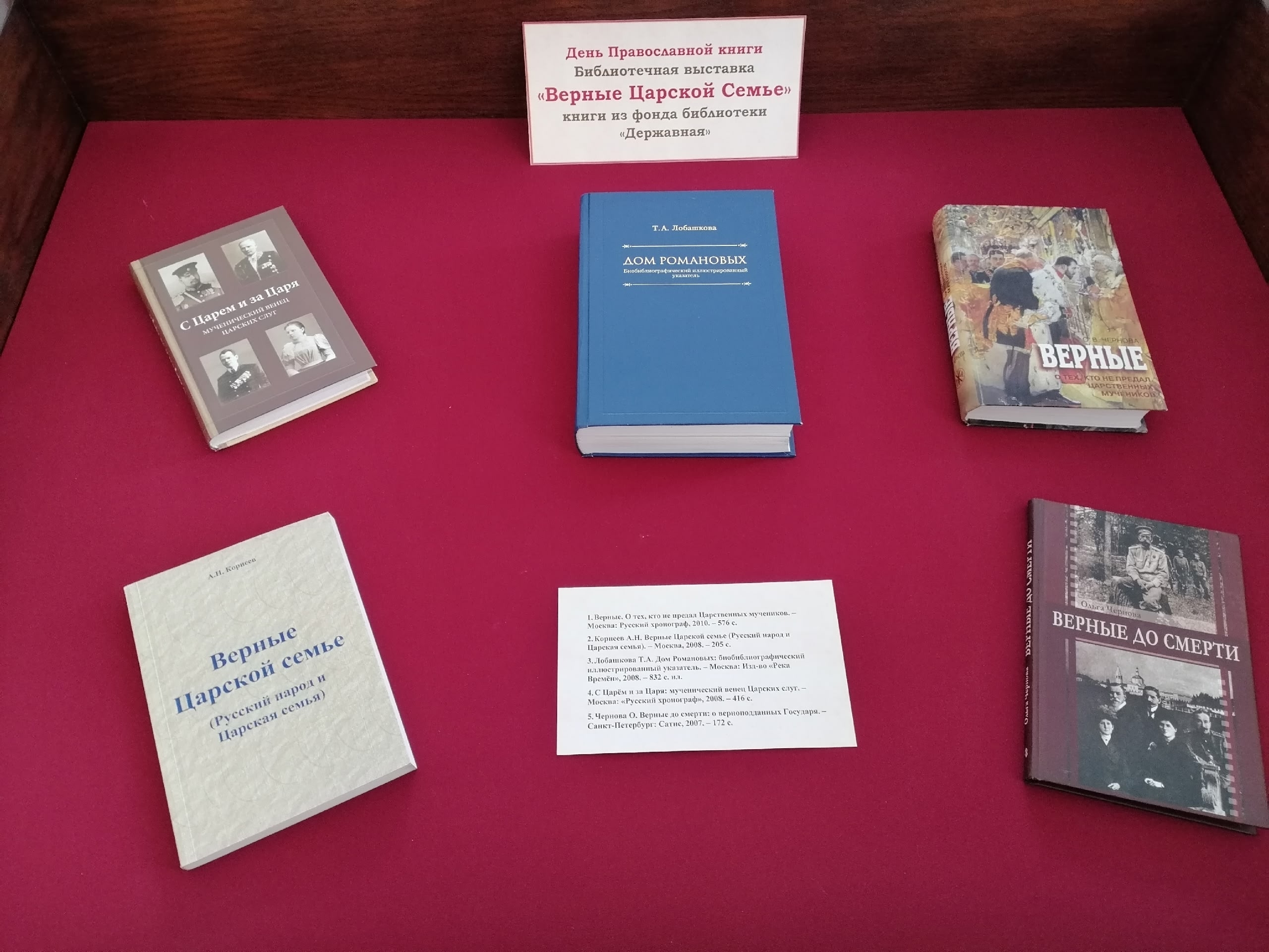 В культурно-просветительском центре «Царский» в память о верных слугах Царской Семьи и ко Дню Православной книги открылась библиотечная выставка «Верные Царской Семье». На выставке представлены книги из фонда библиотеки «Державная» имени святого Государя Императора Николая II центра «Царский».