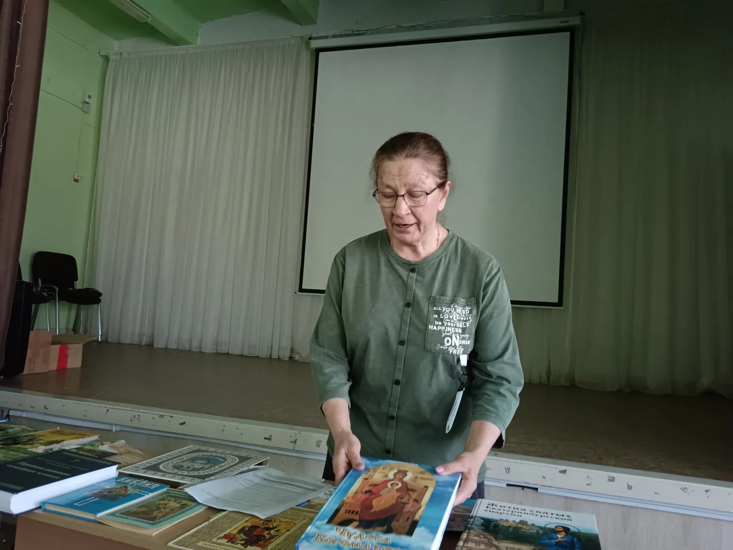 – С ребятами состоялся живой разговор, в процессе которого выясняли: что такое православная книга, чем она отличается от обычной доброй книги; какие главные книги Православия; чем отличаются книги Ветхого Завета и Нового Завета, – поделилась Светлана Павловна. – Ребята увидели семейную реликвию 1887 года, старинную святую книгу, написанную на церковнославянском языке. Прочитали надпись на книге, написанную прабабушкой: «Храните в семье и читайте эту книгу».